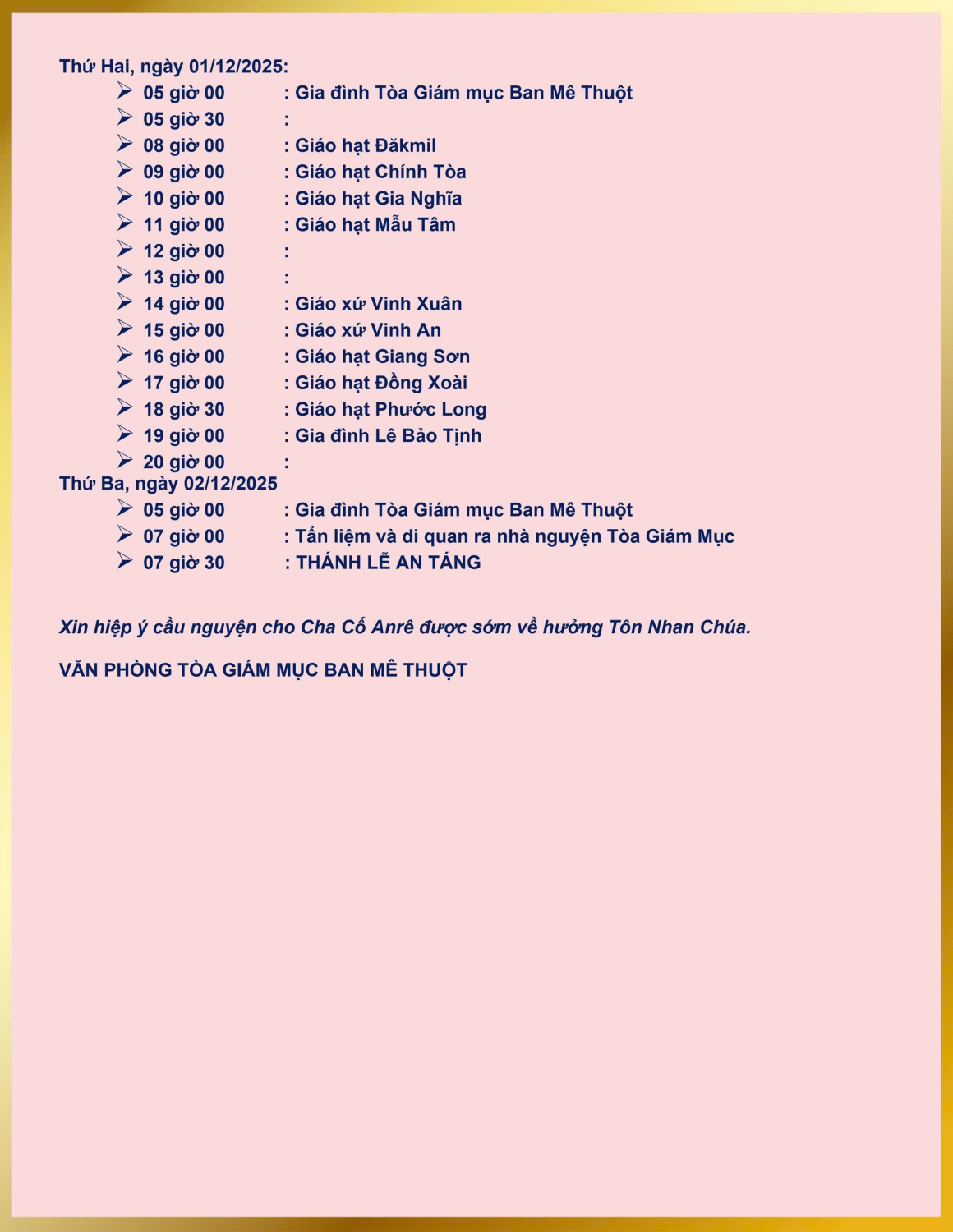 VĂN PHÒNG TÒA GIÁM MỤC BAN MÊ THUỘT