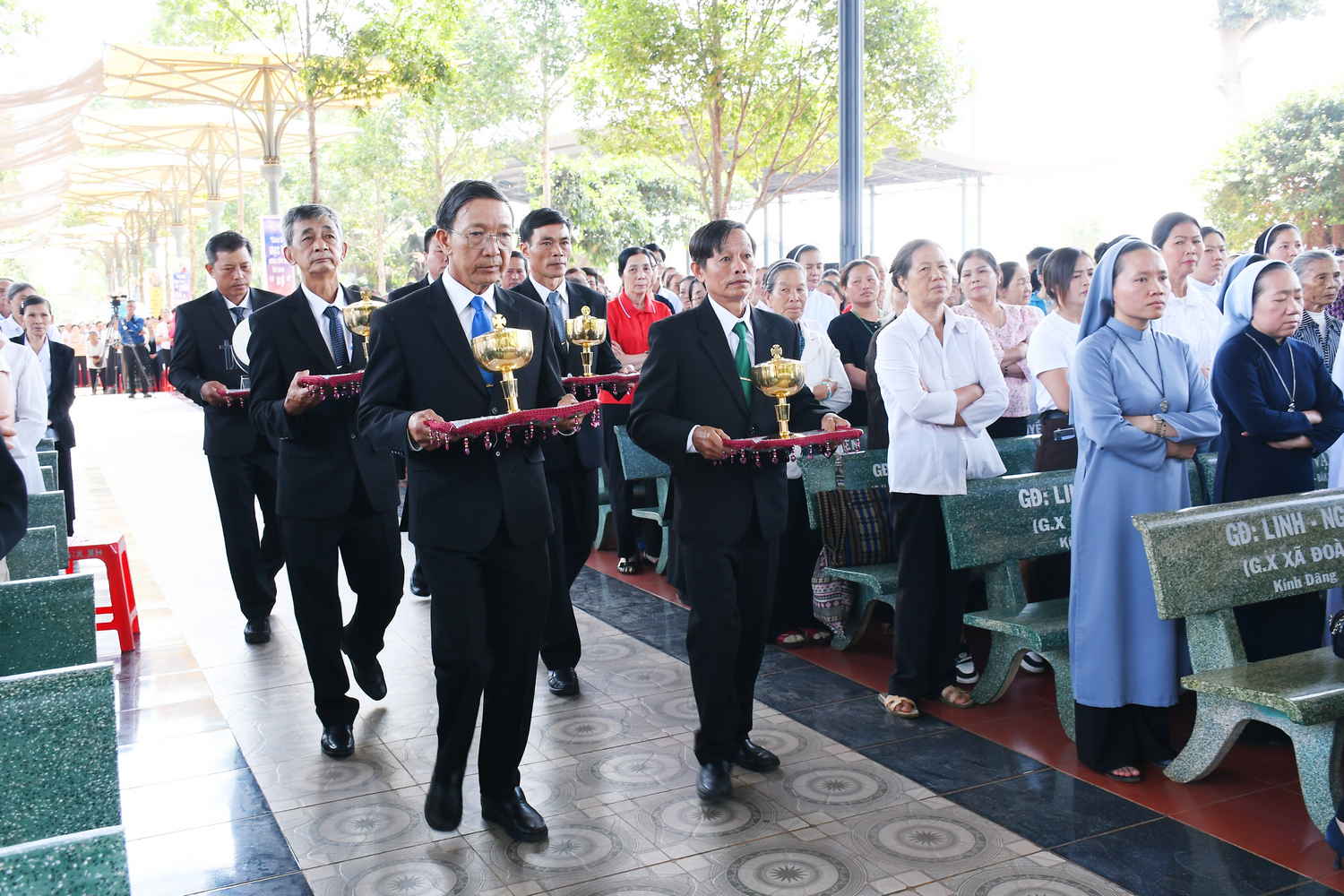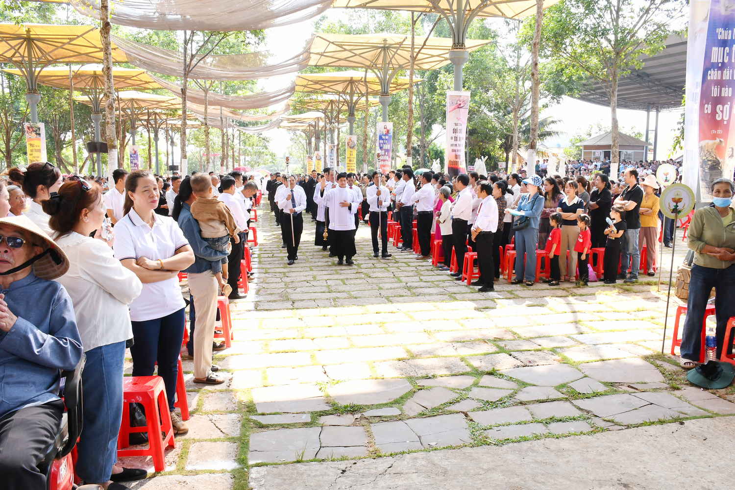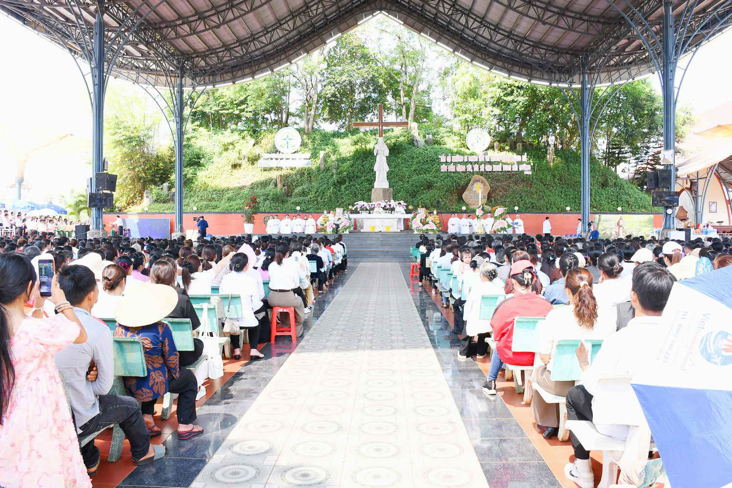 Đúng 09g00, Thánh lễ được bắt đầu. Hiện diện trong đoàn rước có Đức Giám mục Gioan Baotixita Nguyễn Huy Bắc – Giám mục Giáo phận Ban Mê Thuột, Cha Tổng Đại diện Phêrô Nguyễn Văn Thái, Cha Quản lý Giáo phận Gioan Baotixita Nguyễn Công Phi, Cha Giám đốc Trung tâm Hành hương Gioan Baotixita Phạm Văn Phong, quý Cha đồng tế, quý Tu sĩ nam nữ các Hội dòng, cùng đông đảo bà con trong và ngoài Giáo phận tham dự.