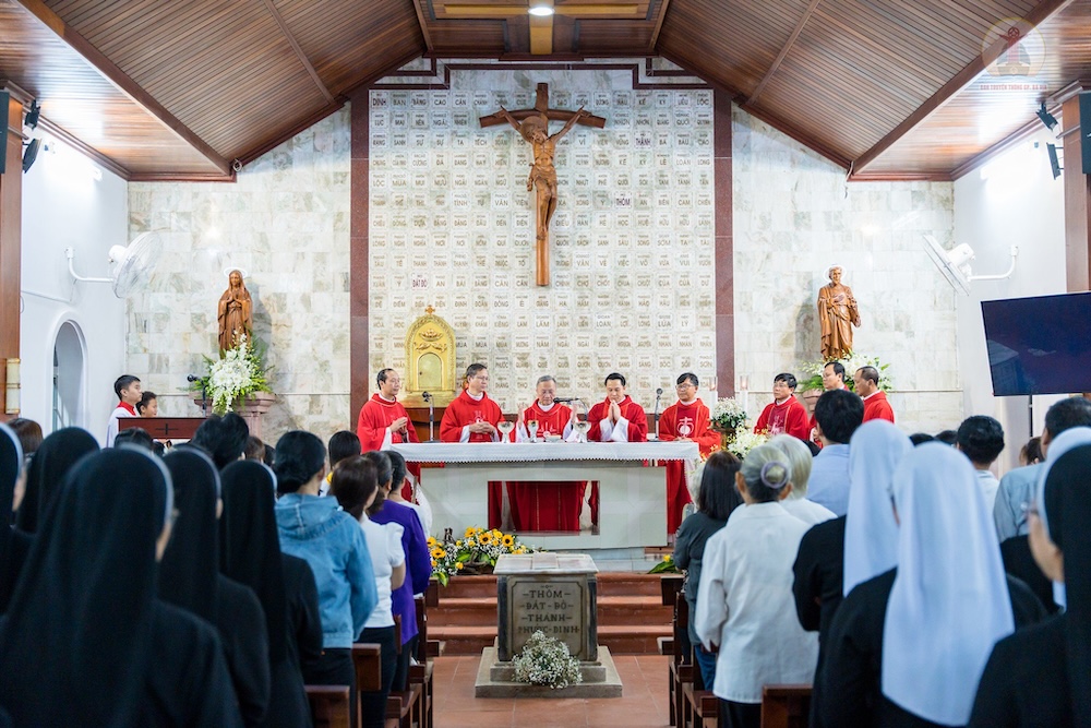 Thánh lễ do Đức cha Tôma Nguyễn Văn Trâm – Nguyên Giám mục Giáo phận Bà Rịa chủ tế. Đồng tế với ngài có Cha Quản hạt Bà Rịa cùng quý cha trong Giáo phận. Hiệp thông tham dự thánh lễ có đông đảo quý tu sĩ, cách riêng quý Sơ Hội dòng Mến Thánh Giá Bà Rịa, cùng cộng đoàn tín hữu gần xa.