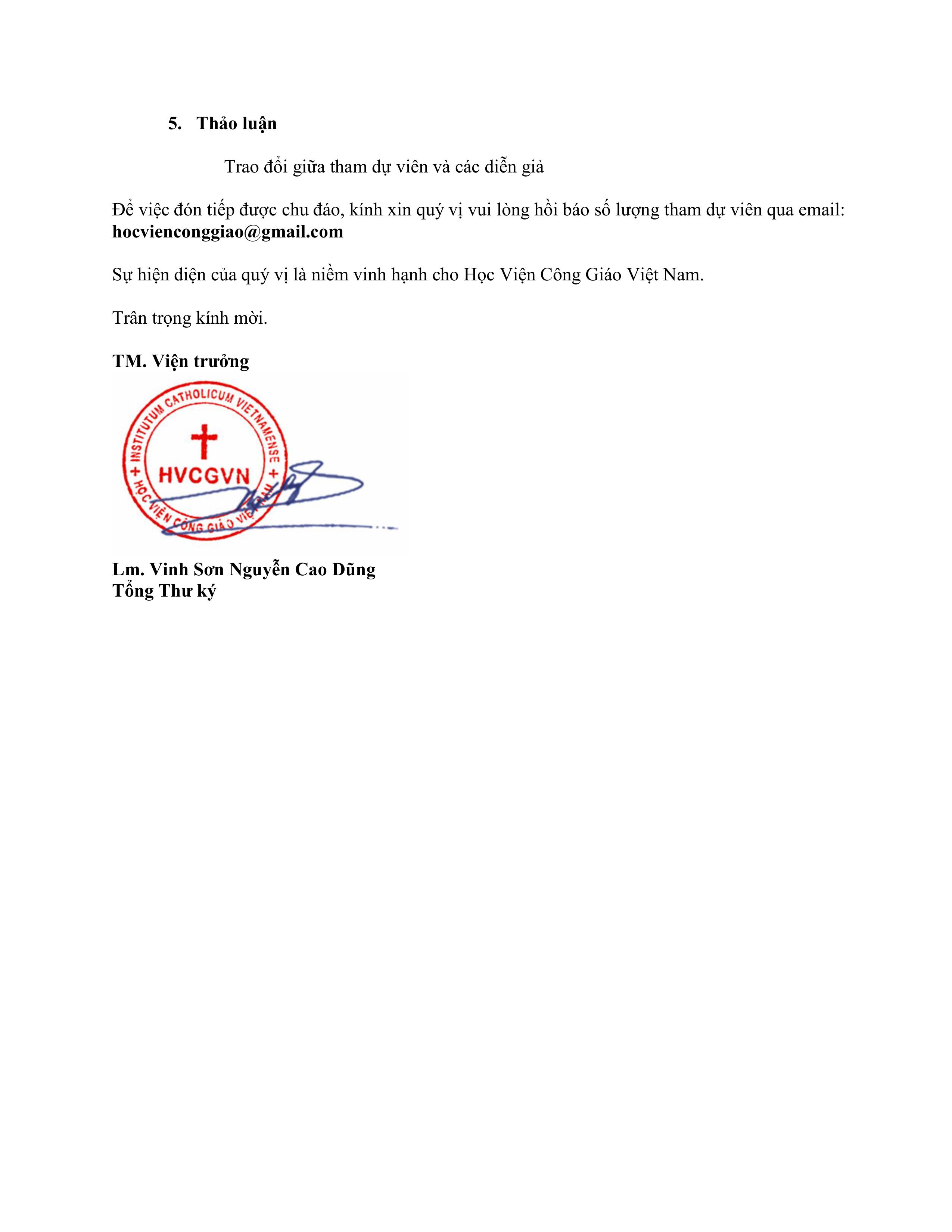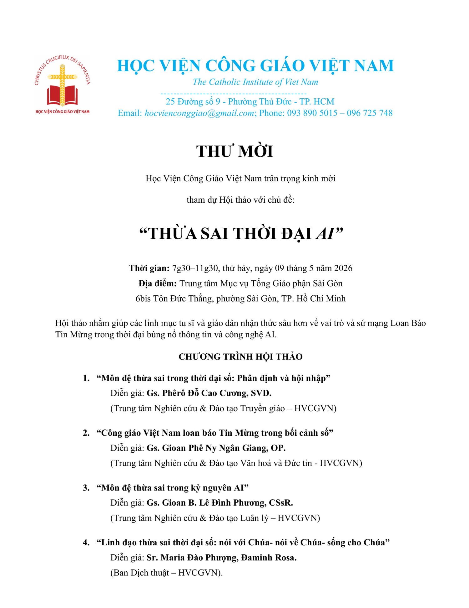 Học Viện Công Giáo Việt Nam trân trọng kính mời