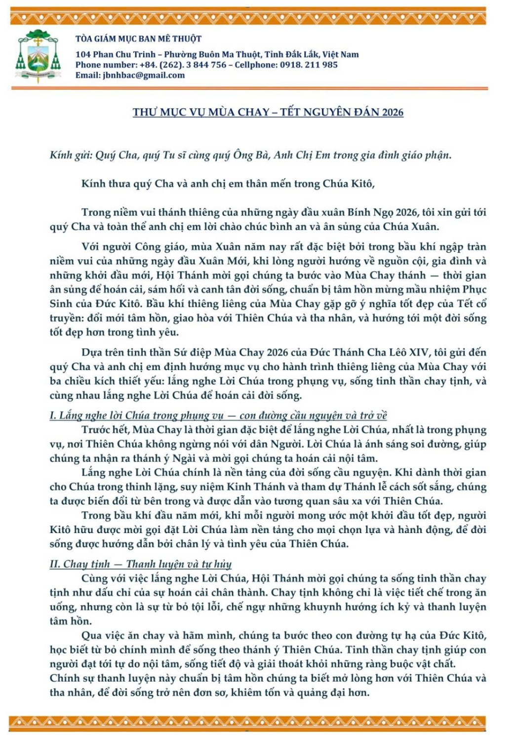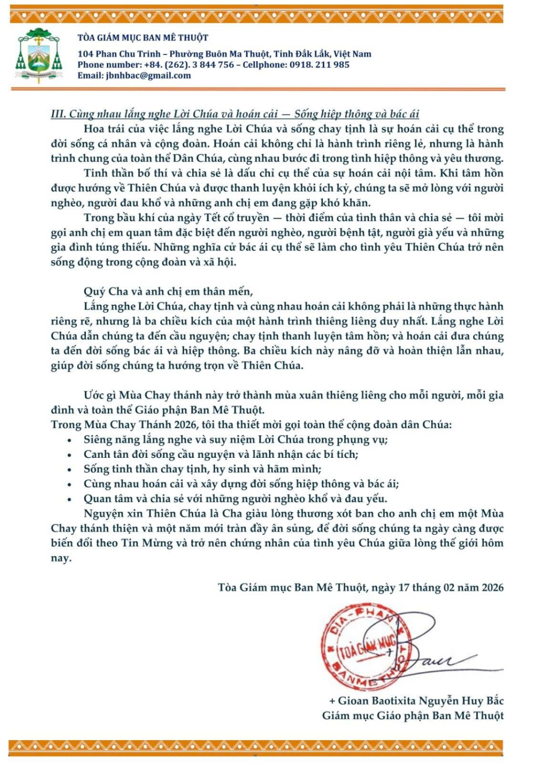 Tòa Giám mục Ban Mê Thuột, ngày 17 tháng 02 năm 2026