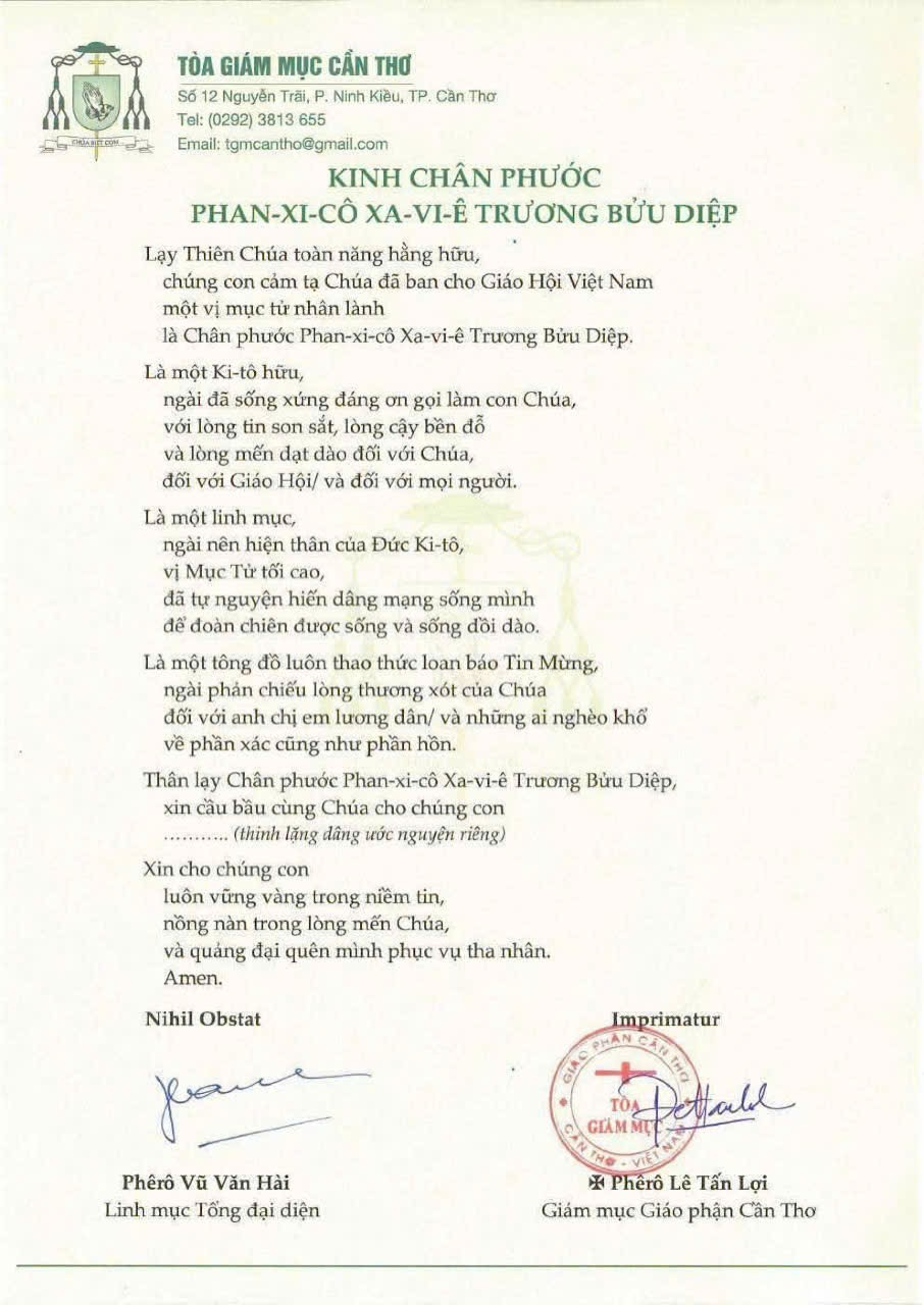 Kinh Chân Phước Phan-xi-cô Xa-vi-ê Trương Bửu Diệp
