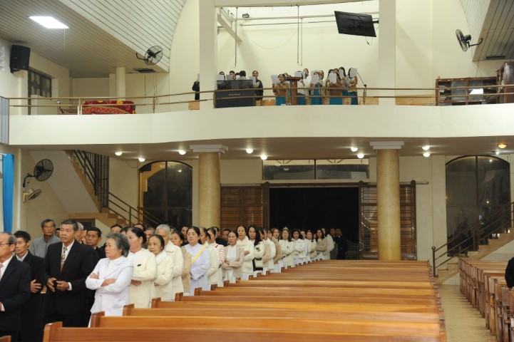 Khởi đầu Thánh lễ là đoàn rước từ tiền sảnh nhà thờ gồm quý cha, quý Thường vụ hội đồng Giáo xứ, Ban hành giáo các Giáo họ, đại diện các hội đoàn và giáo dân  Giáo họ Phaolô Trở Lại nghiêm trang tiến lên cung thánh.