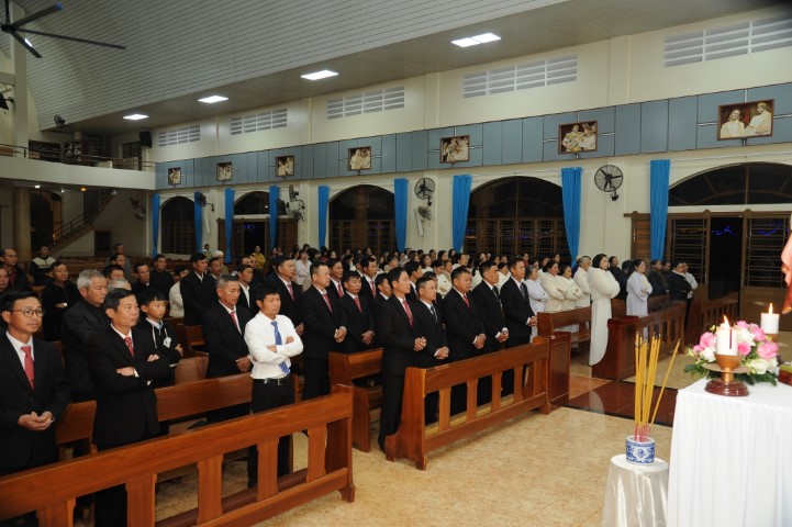 Kết thúc thánh lễ, cha quản xứ Phaolô gởi lời mừng lễ tới Giáo họ và sau đó ghi hình lưu niệm với quý chức.