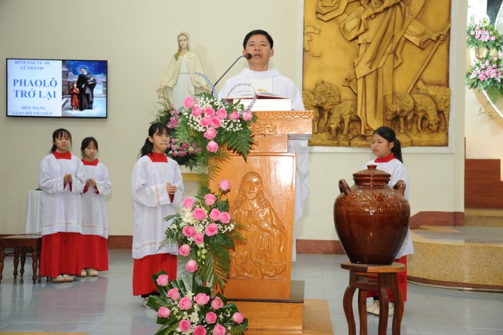 Vì Thánh lễ chính ngày 25 tháng 01 trùng ngày Chúa nhật 3 thường niên nên cha quản xứ cử hành trước một ngày.