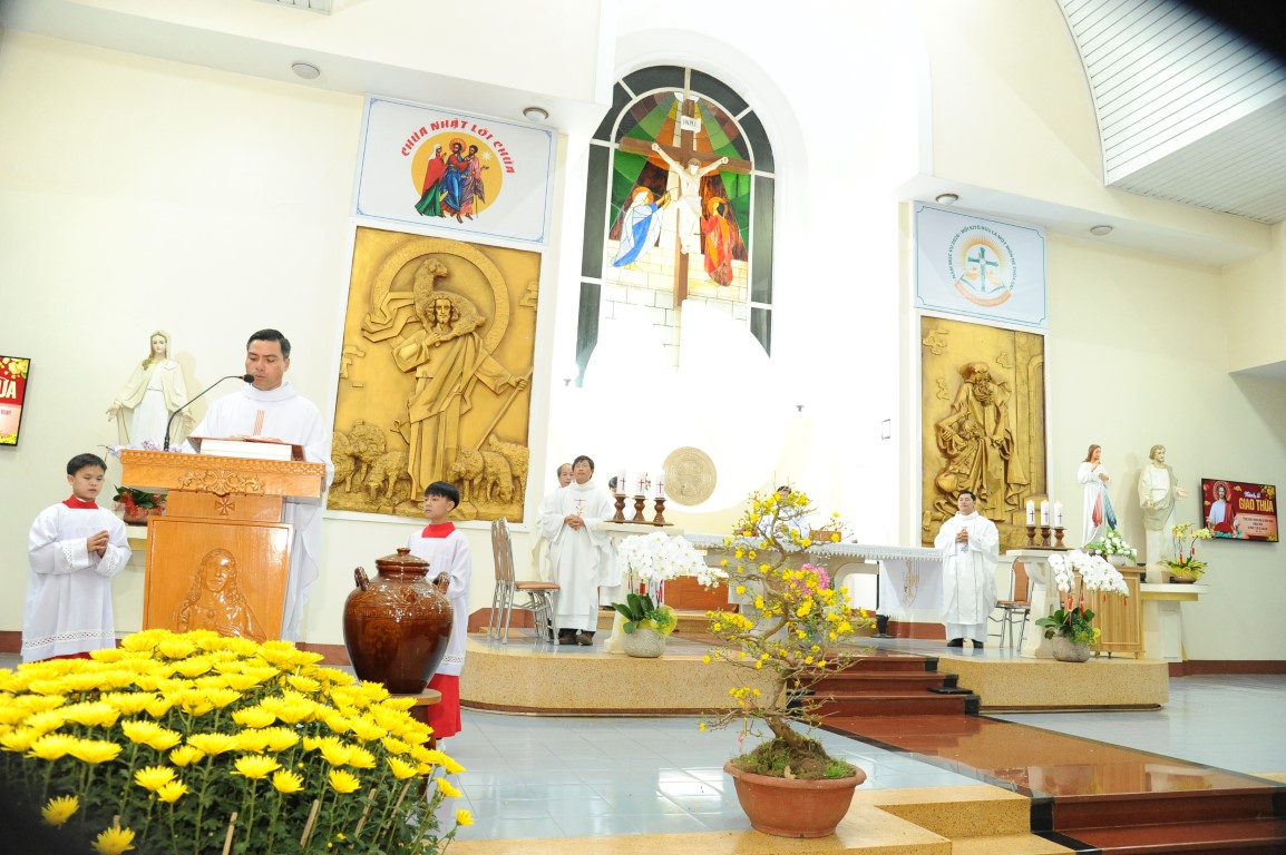 Trong bài giảng, cha Giuse Trần Hữu Hoan mời gọi cộng đoàn nhìn lại năm qua để tạ ơn Thiên Chúa đã gìn giữ, đồng thời khiêm tốn xin lỗi Chúa và tha thứ cho nhau về những thiếu sót, lỗi lầm, hầu tâm hồn được thanh thản bước vào năm mới.
