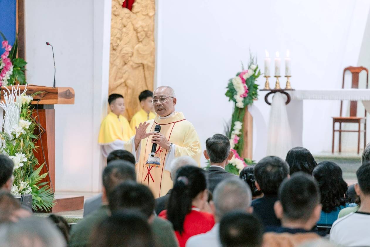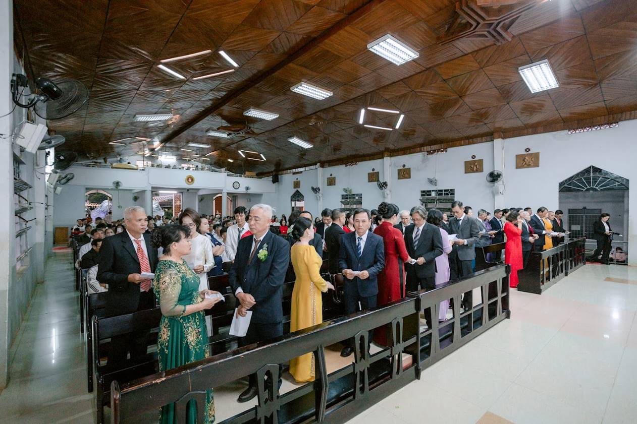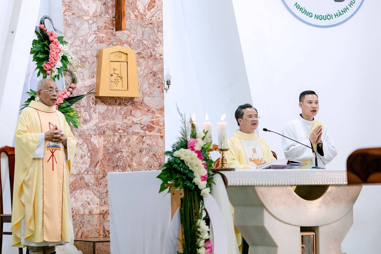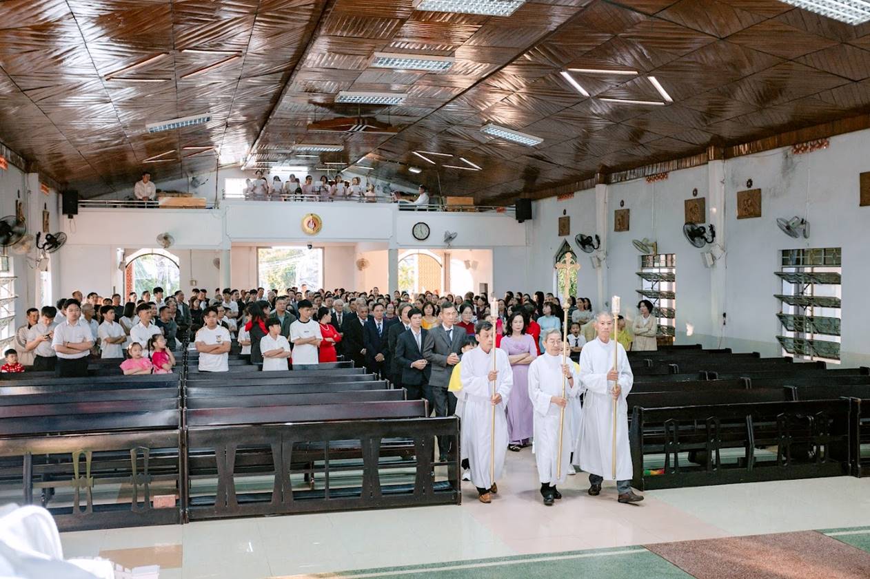 Thánh lễ do cha quản xứ Phêrô Nguyễn Minh Hiển chủ tế; cha Phêrô Hoàng Mạnh Hùng, OP. đồng tế và giảng lễ. Mở đầu Thánh lễ là nghi thức rước long trọng từ cửa nhà thờ tiến vào cung thánh, với sự hiện diện trang nghiêm của các đôi hôn phối trong niềm vui và tâm tình tạ ơn. Hình ảnh các gia đình cùng tiến bước trong phụng vụ diễn tả cách sống động hành trình hôn nhân được dẫn dắt bởi Thiên Chúa.