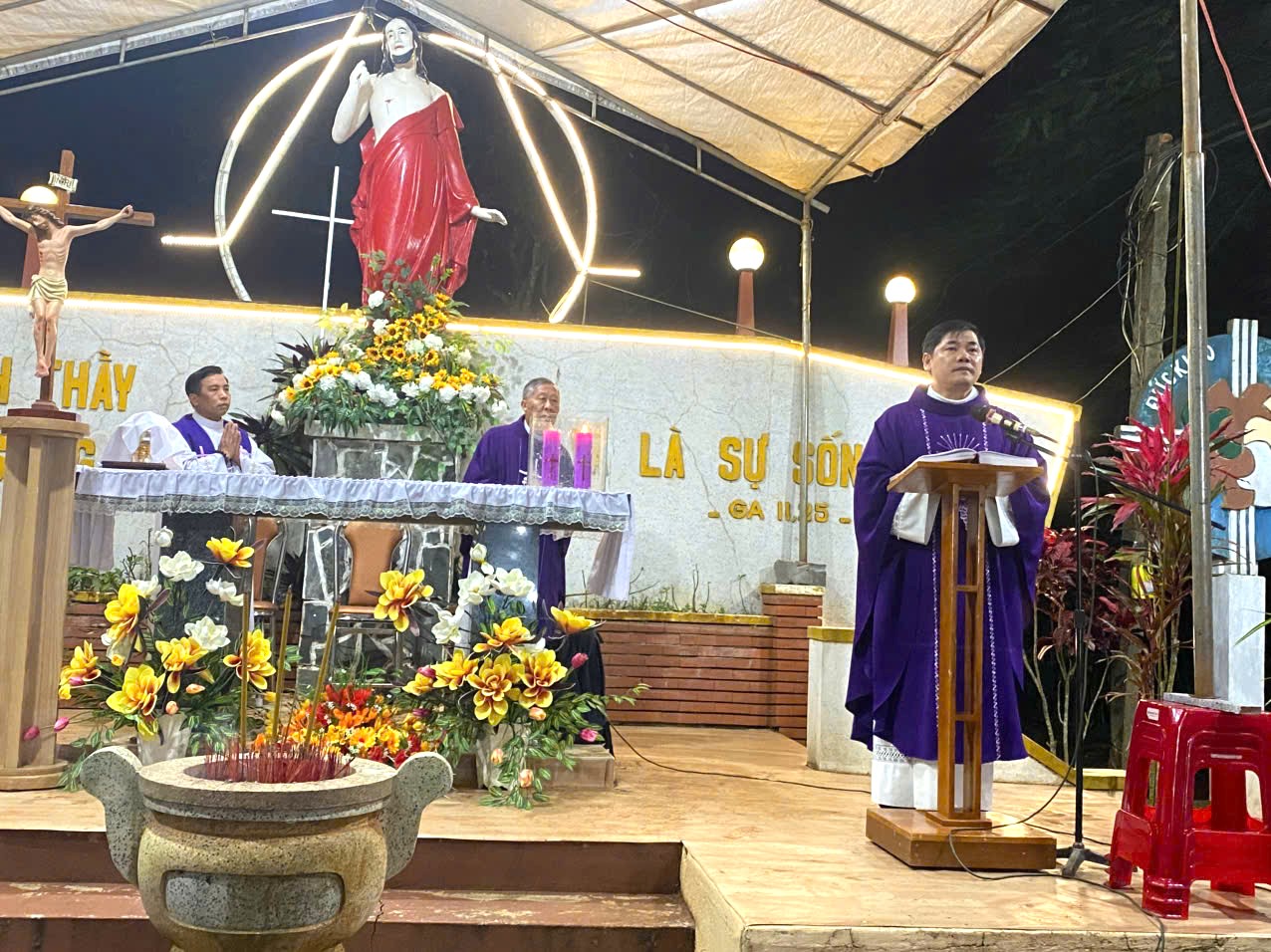 18 giờ 30 thánh lễ, cha quê hương  Antôn Nguyễn Thành Chương, OP chủ tế, cùng đồng tế có cha Giuse Nguyễn Văn Tĩnh, CM và cha quê hương GB Trần Đình Thắng, SSS.