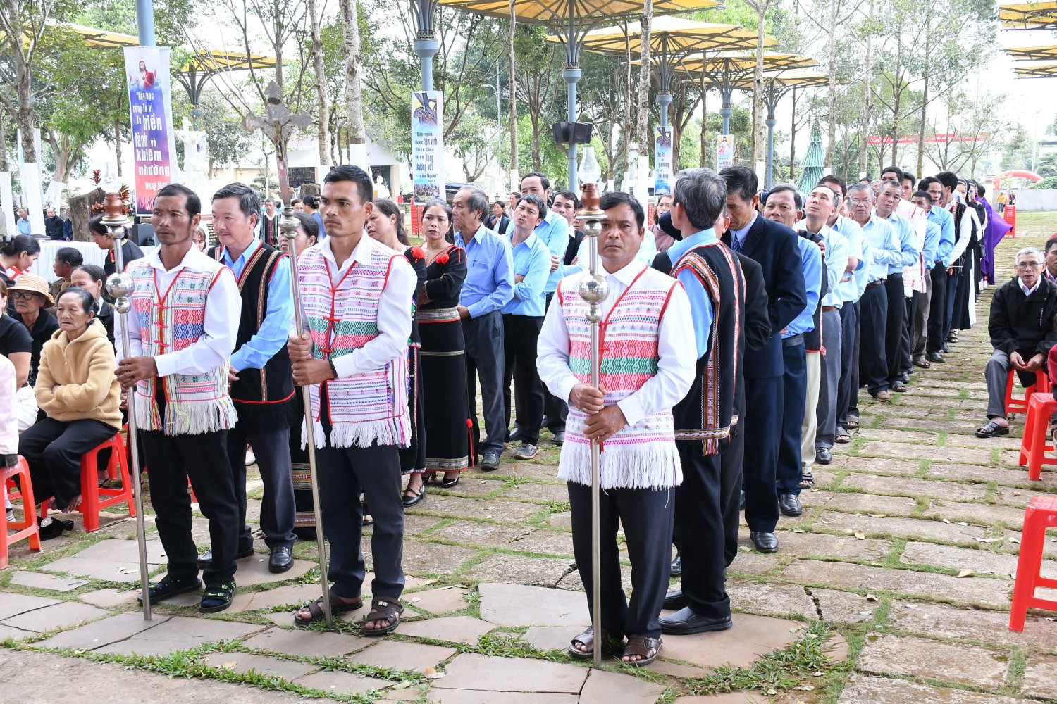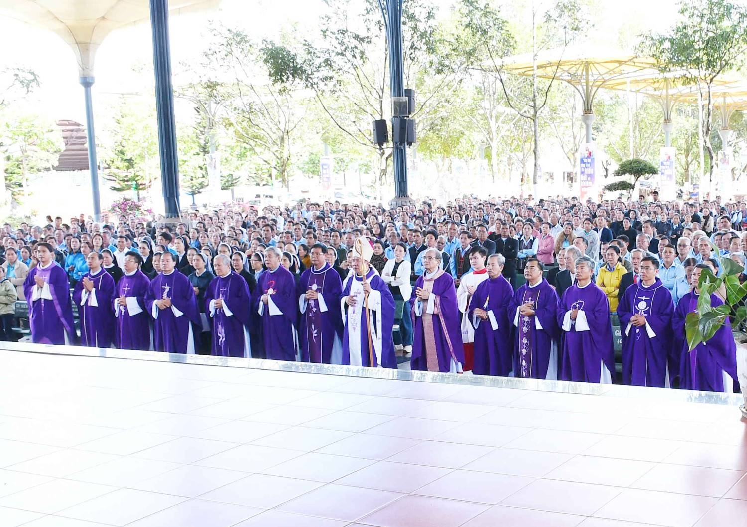 Thánh lễ Vào lúc 10g15’, Thánh lễ hành hương được bắt đầu, hiện diện trong đoàn rước có Đức Giám mục Giáo phận, quý Cha đồng tế, quý Tu sỹ nam nữ, đại diện Ban Loan Báo Tin Mừng của 22 Vùng trong Giáo phận.