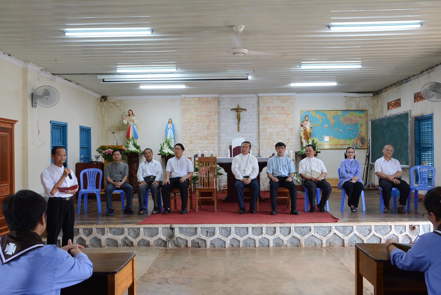Hiện diện trong ngày trọng đại này có Đức Cha Gioan Baotixita Nguyễn Huy Bắc – Giám mục Giáo phận, Cha Trưởng ban Giáo lý Gioan Baotixita Nguyễn Văn Liêm, hai Cha Phó ban Phêrô Vương Tiên Hoàng và Giuse Đinh Tiến Dương, Cha Thư ký Giuse Nguyễn Công Anh, Cha giáo Phaolô Nguyễn Đình Cương, quý giảng viên, cùng 88 học viên đã hoàn thành khóa học.
