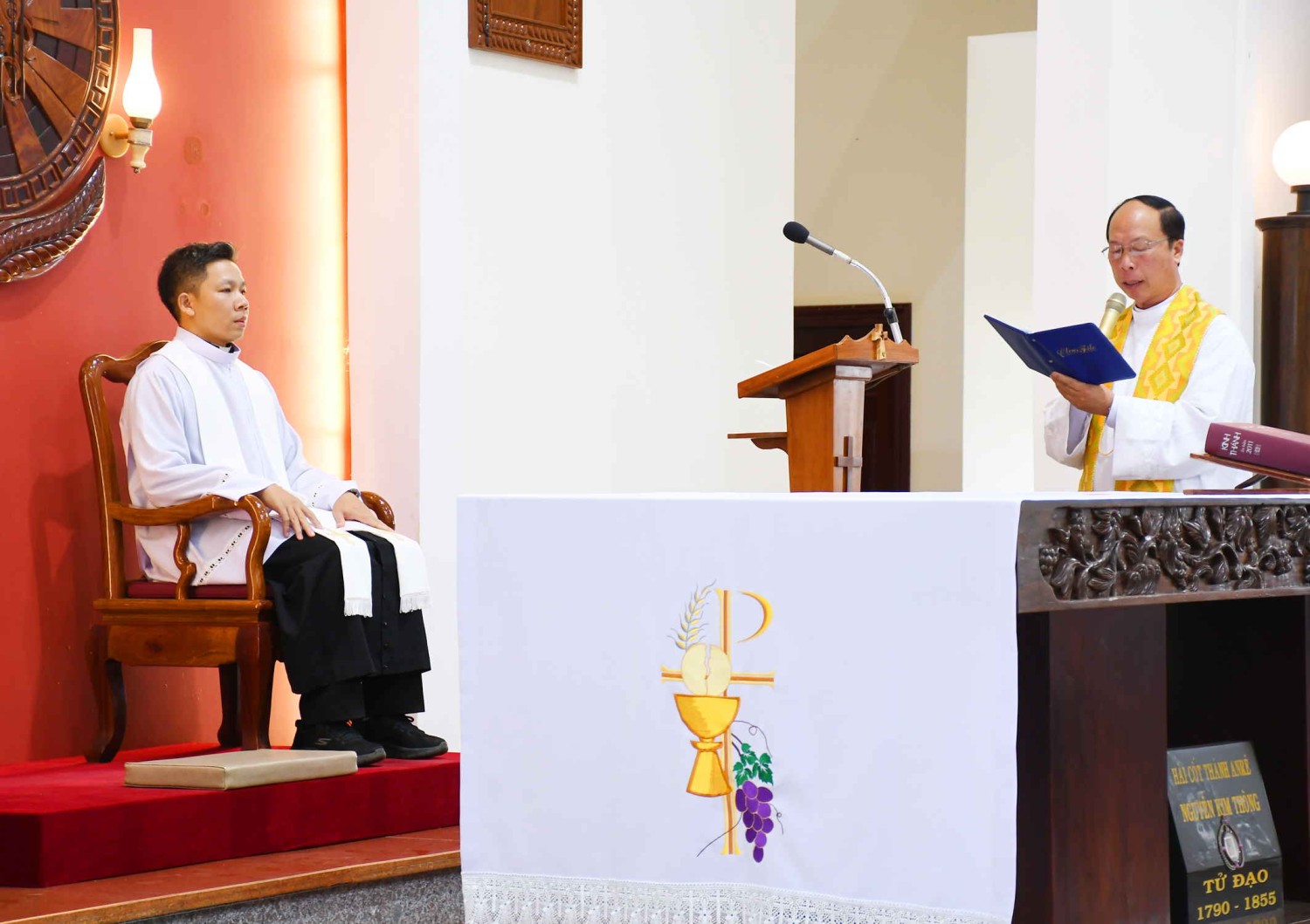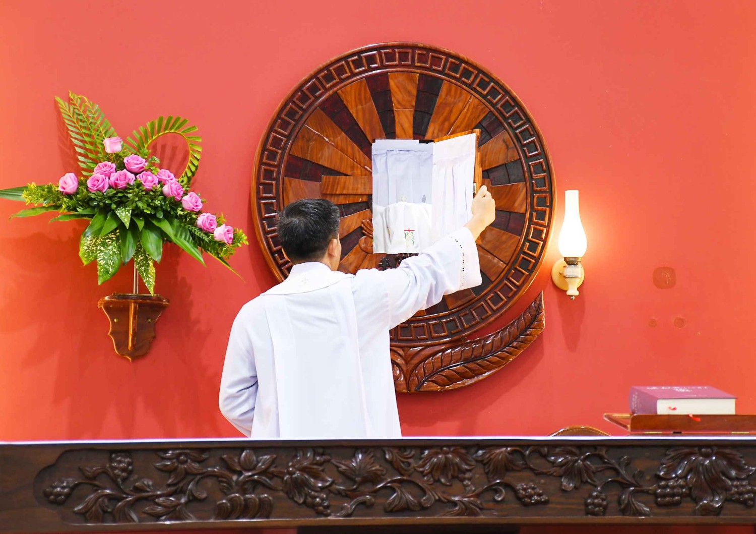 Thánh Thể là nguồn mạch và tột đỉnh đời sống Kitô hữu. Cha Quản hạt dẫn Cha tân Quản nhiệm đến mở cửa Nhà tạm, với ý nghĩa từ đây trong thừa tác vụ Linh mục, ngài luôn tiếp cận với Chúa Giêsu Thánh Thể và trao ban Chúa Giêsu là bánh trường sinh đem lại sức sống thần linh cho đoàn chiên của mình.