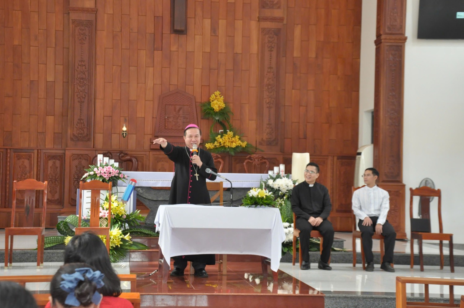 Đức Cha đã nêu lại hai câu hỏi mà cách đây 20 năm ngài đã đặt ra cho Giáo viên khi ngài còn là Cha Quản xứ Giáo xứ Phước Long: “Chúng ta là kho tàng chất xám vô giá của Mẹ Giáo hội, tôi đã làm được gì cho Mẹ Hội thánh? và tôi sẽ làm gì cho Mẹ Hội thánh? “.