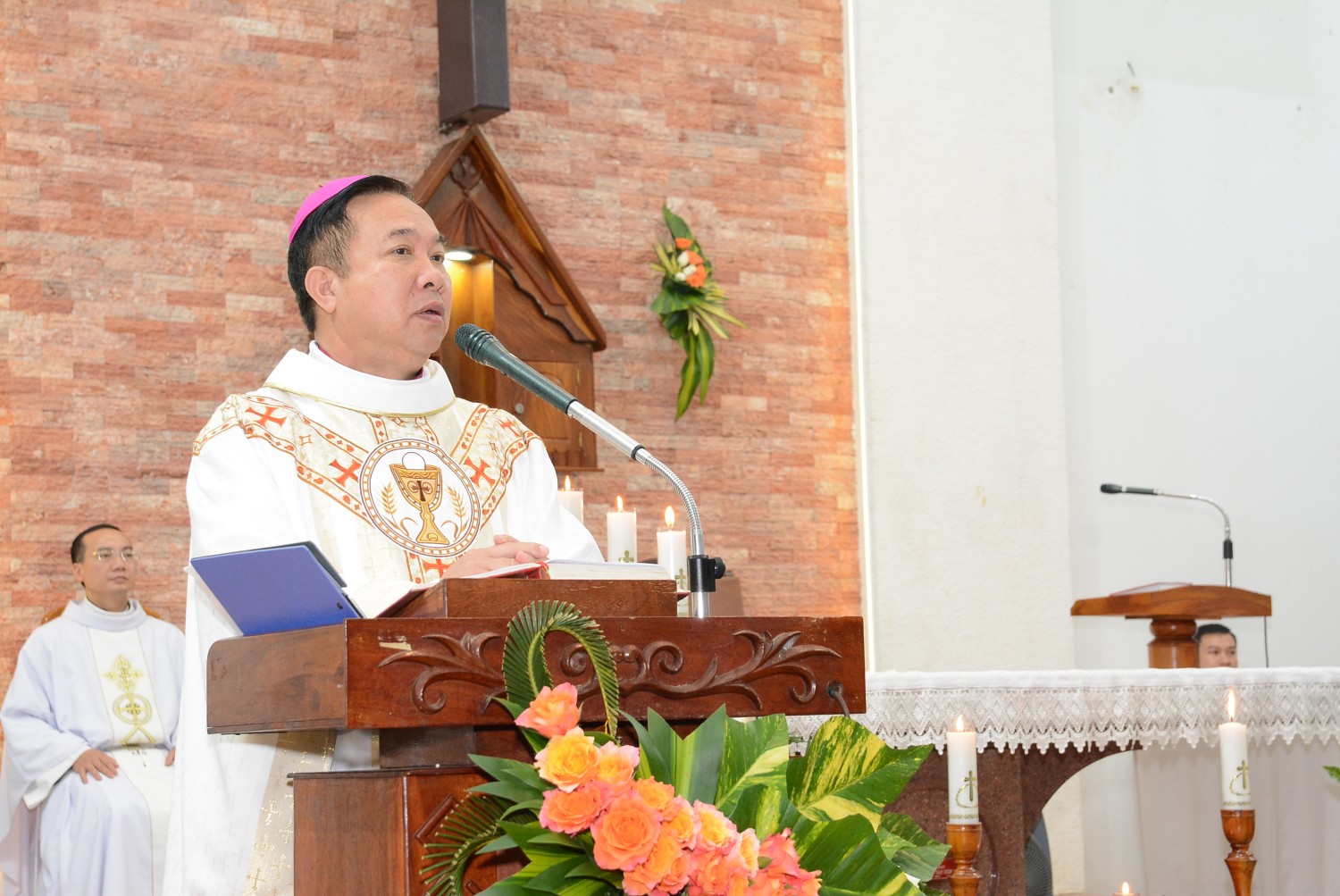 Đầu thánh lễ, Đức Cha bày tỏ sự vui mừng khi thấy quý khách mời và đông đảo bà con giáo dân đã vượt qua cơn mưa nặng hạt, quy tụ về nhà thờ Hòa Nam, để cùng tạ ơn Thiên Chúa và cầu nguyện cho giáo lý viên của giáo xứ. Đức Cha xin Chúa, qua lời cầu bầu của thánh Phanxicô Xaviê cho mỗi người, cách riêng cho giáo lý viên giáo xứ Hòa Nam biết chiêm ngắm cuộc đời thánh nhân như là mẫu gương sáng ngời cho đời sống dấn thân phục vụ trong ơn gọi giáo lý viên của mình.