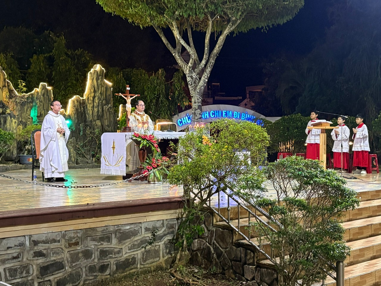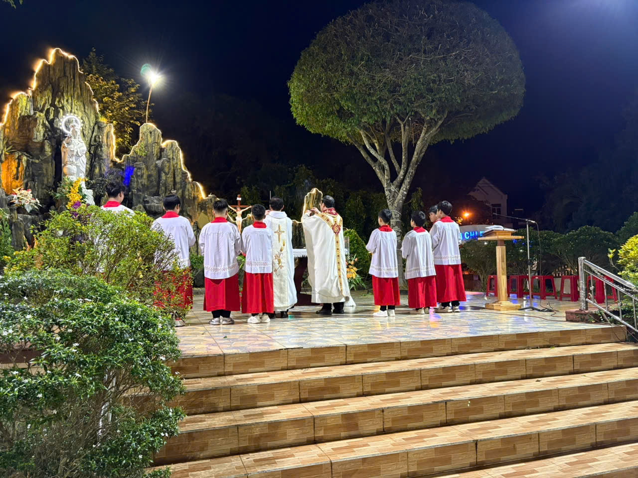 Thánh lễ do Cha Quản xứ TôMa Aquinô chủ tế; cùng đồng tế với ngài có Cha phó Antôn, quý Tu sĩ và đông đảo cộng đoàn dân Chúa hiệp dâng trong bầu khí trang nghiêm và sốt sắng.