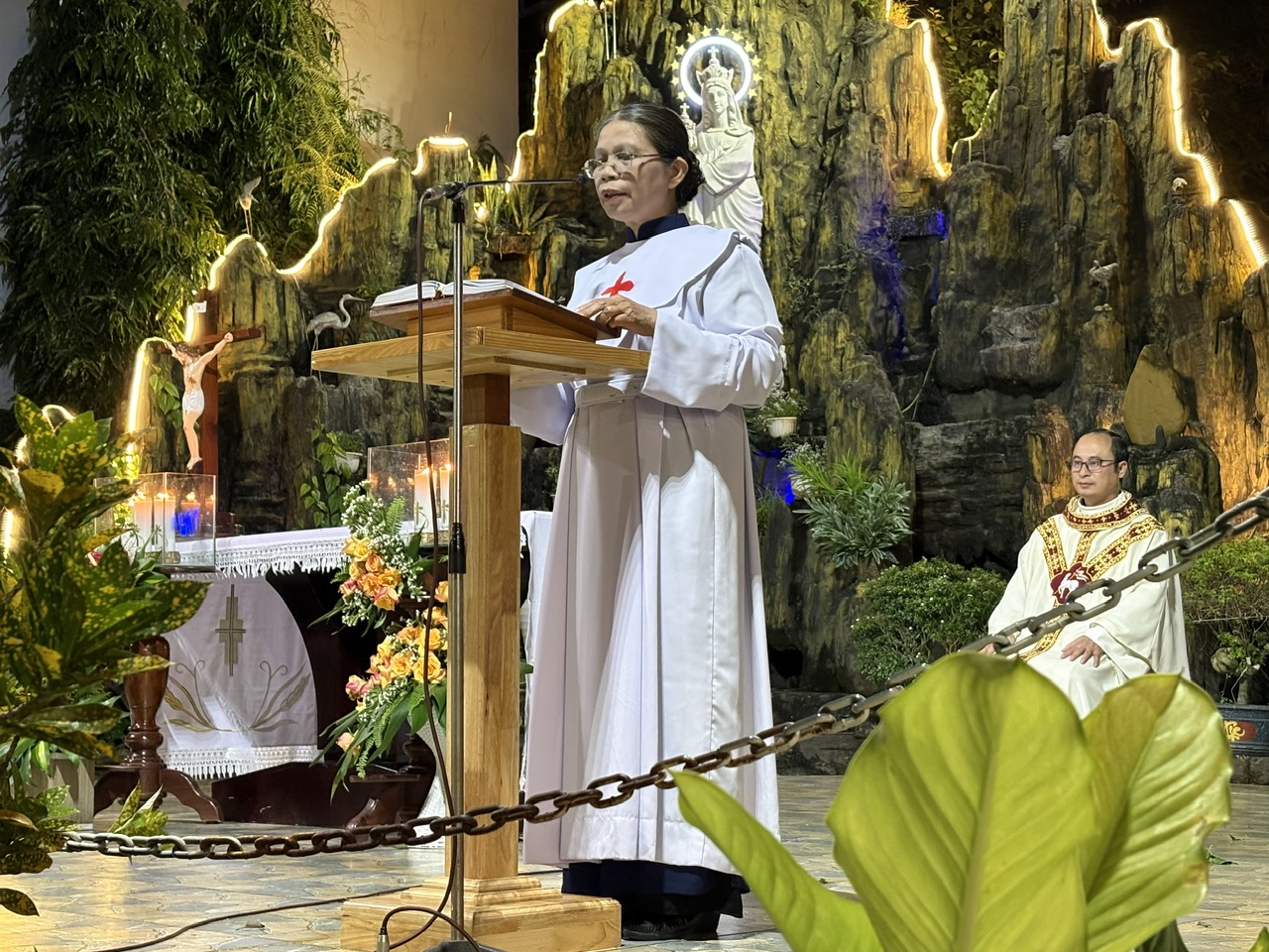 Ngay từ đầu Thánh lễ, Cha chủ tế đã gửi lời chúc mừng bổn mạng đến tất cả các chị em mang thánh hiệu Maria. Ngài mời gọi cộng đoàn hướng tâm hồn về Đức Trinh Nữ với tước hiệu Vô Nhiễm Nguyên Tội, để qua đặc ân cao quý Thiên Chúa dành cho Mẹ, mỗi người chúng ta cũng được đón nhận dạt dào ơn lành từ tình yêu Chúa nhờ lời chuyển cầu đầy mẫu tử của Mẹ.