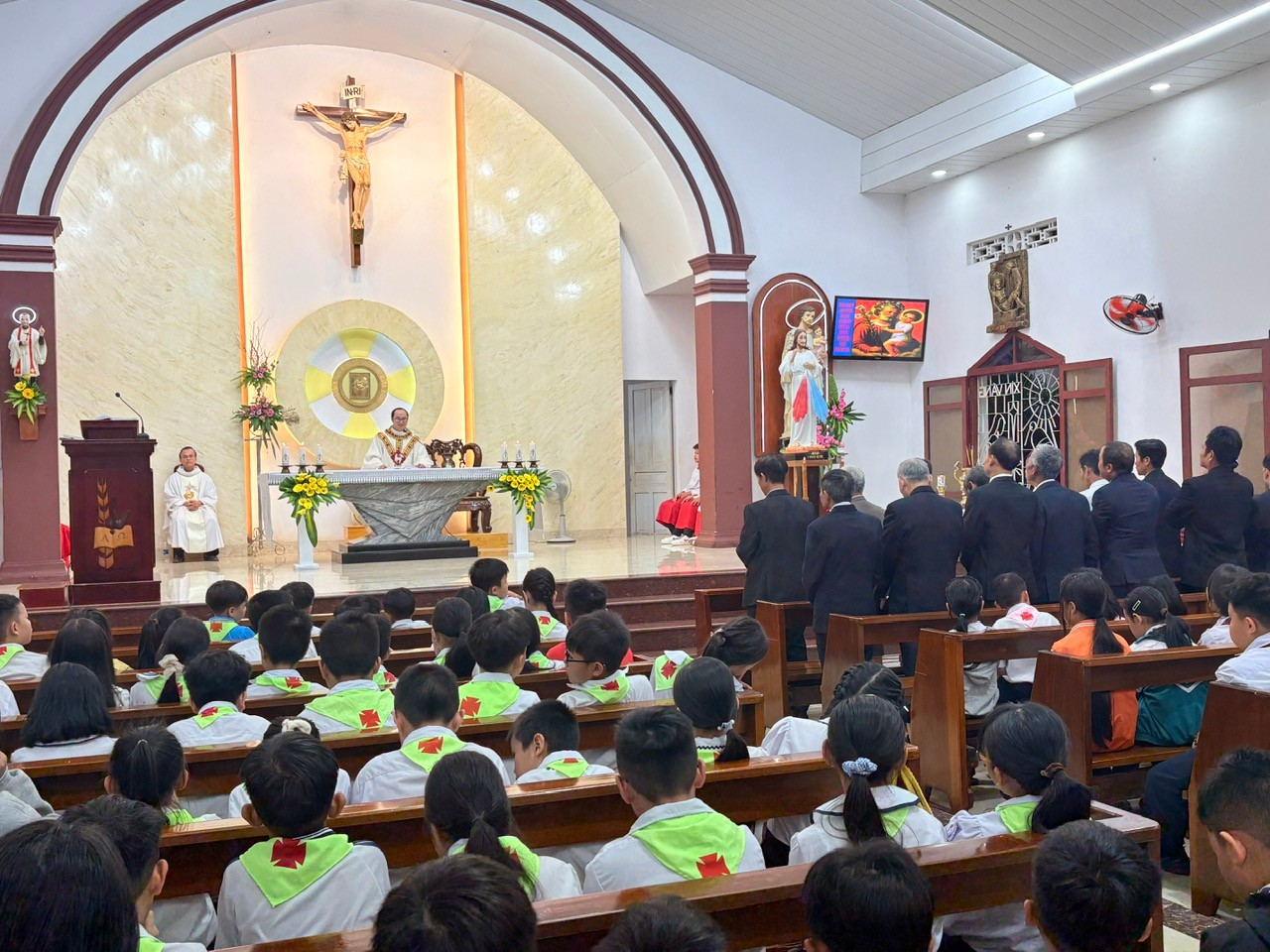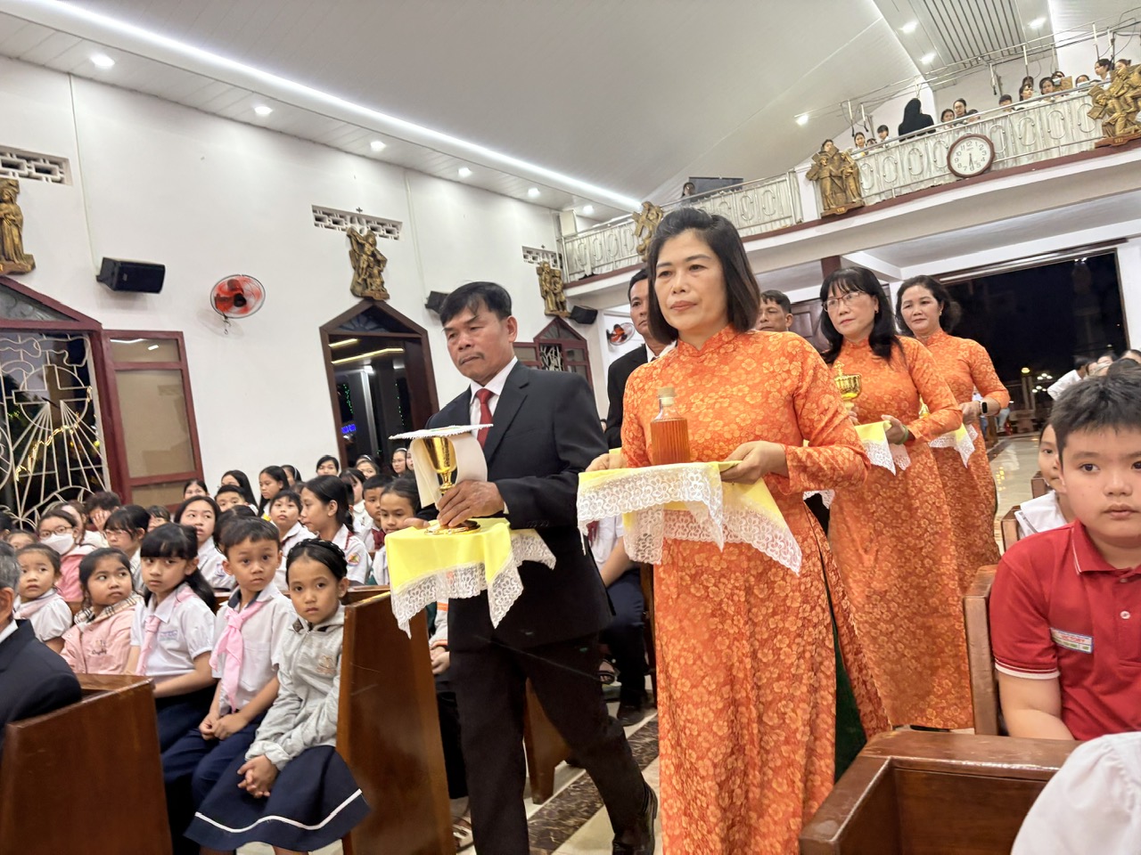 Thánh lễ được cử hành lúc 18g00 tại thánh đường giáo xứ, do Cha Quản xứ Tôma Aquinô chủ tế, đồng tế với Cha phó Antôn, cùng sự tham dự đông đảo của cộng đoàn dân Chúa.