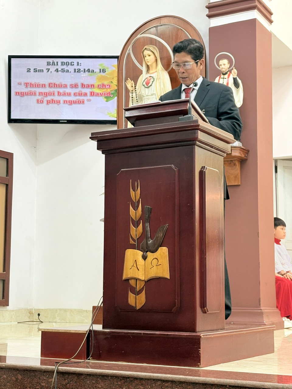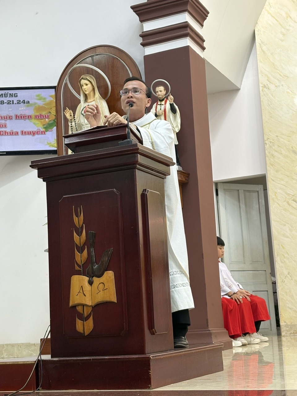 Chia sẻ Lời Chúa dựa trên Tin Mừng theo Thánh Matthêu, Cha phó Antôn đã khắc họa hình ảnh Thánh Giuse – “Đấng Công Chính”. Ngài là người biết lắng nghe và kết hiệp mật thiết với Thiên Chúa, luôn mau mắn thi hành thánh ý Chúa qua những gì được mặc khải, kể cả trong những giấc mộng.