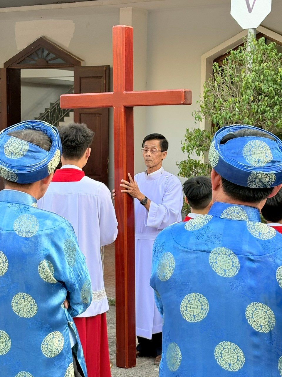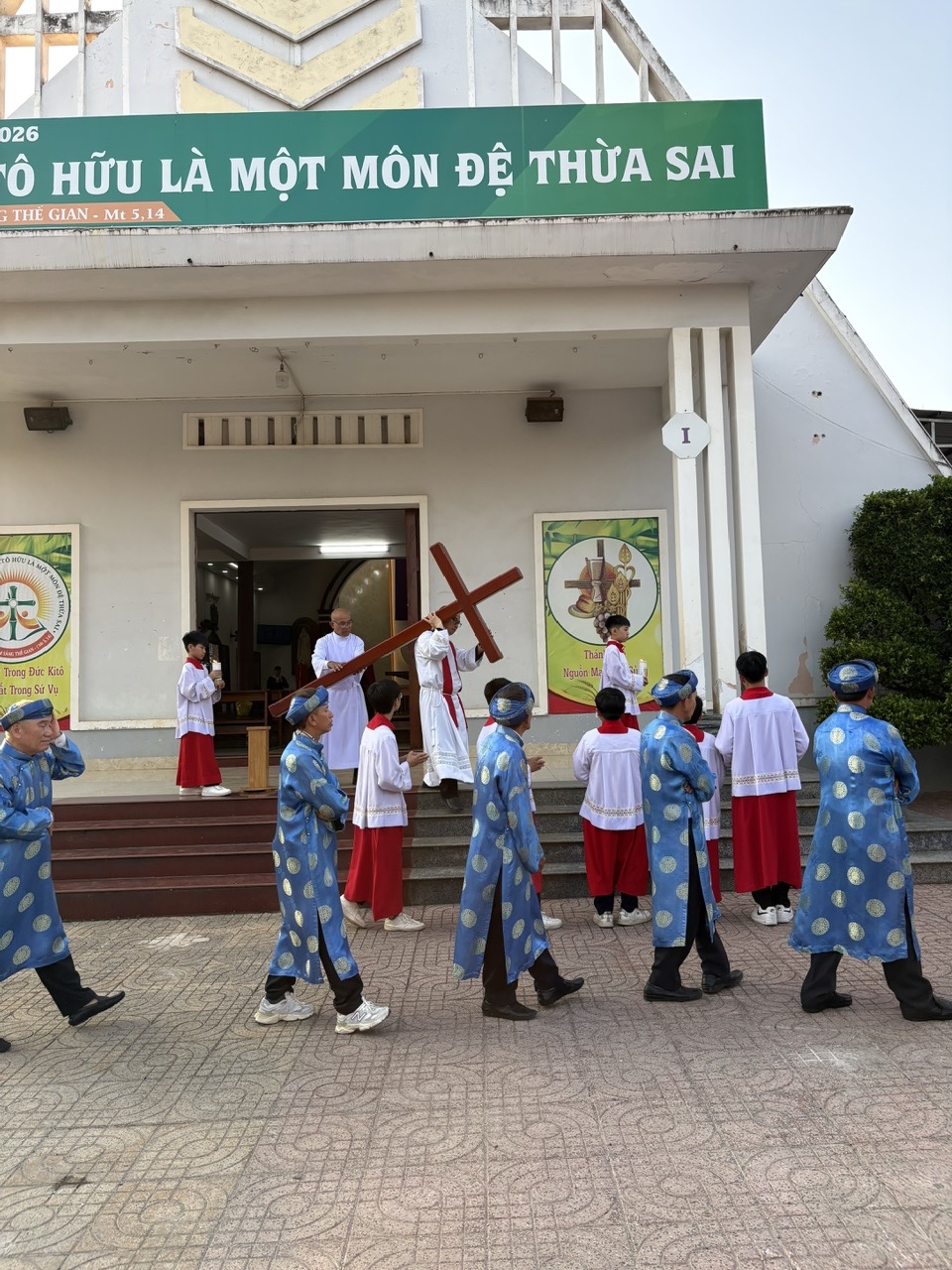 Ngay từ những bước chân đầu tiên của cuộc rước Đàng Thánh Giá, sự thinh lặng đã bao trùm toàn thể cộng đoàn. Từng chặng dừng chân không chỉ là những điểm dừng của hành trình, mà còn là những khoảnh khắc lắng đọng, giúp mỗi người chiêm ngắm sâu xa hơn tình yêu tự hiến của Chúa. Trong tiếng Lời Chúa, lời nguyện và những phút giây thinh lặng, cộng đoàn được mời gọi bước theo Chúa trên con đường thập giá – con đường của yêu thương, hy sinh và vâng phục.