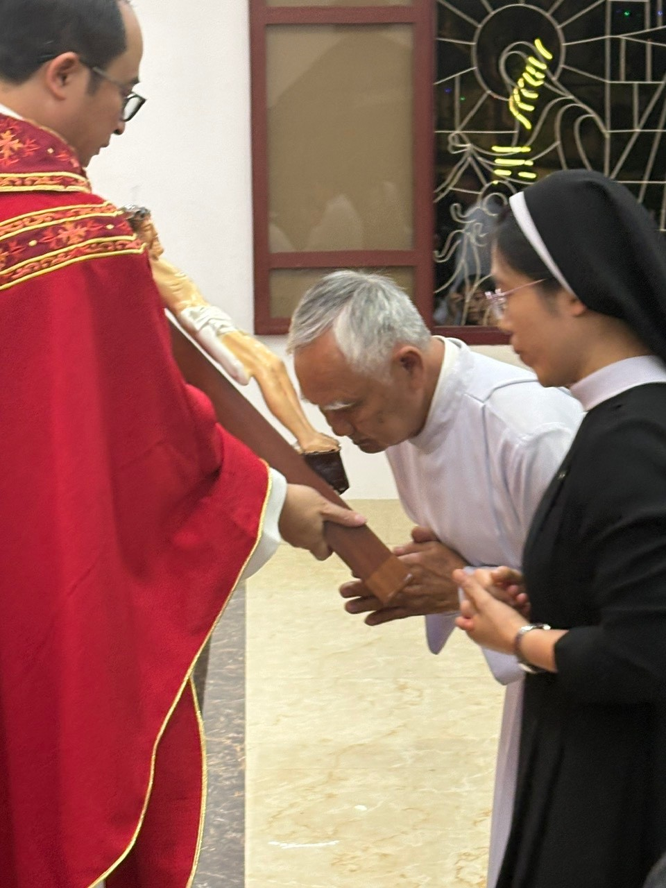 Cao điểm của buổi cử hành là nghi thức Kính thờ Thánh Giá – nơi mỗi người tiến lên tôn kính thập giá qua cử chỉ hôn chân Thánh Giá, diễn tả lòng tôn kính và tri ân trước tình yêu tự hiến của Chúa. Từ dấu chỉ của đau khổ và cái chết, thập giá đã trở thành nguồn ơn cứu độ và niềm hy vọng cho toàn thể nhân loại.