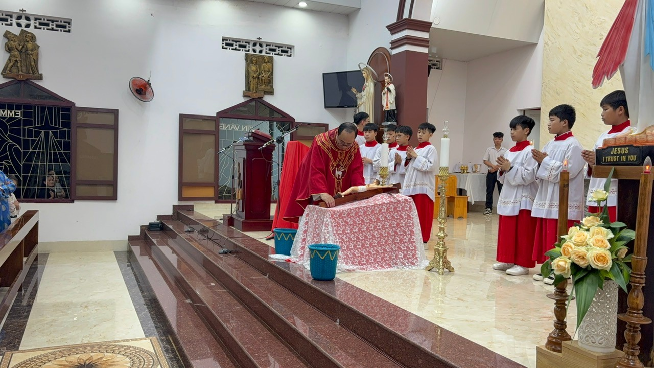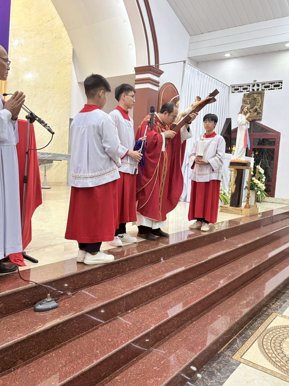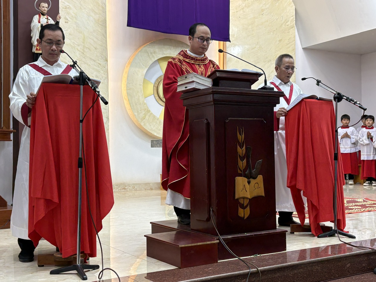 Trong phần Phụng vụ Lời Chúa, cộng đoàn sốt sắng lắng nghe trình thuật cuộc Thương Khó, như được sống lại từng giây phút cuối cùng của Chúa Giêsu trên hành trình cứu độ. Qua phần chia sẻ, Cha Quản xứ Tôma Aquinô đã gợi lại hình ảnh thánh Phêrô trong đêm Thầy chịu nạn. Dù đã theo Chúa suốt ba năm và được dạy dỗ nhiều điều, Phêrô vẫn chưa thể hiểu trọn vẹn con người và con đường của Thầy; ông từng nghĩ mình đủ mạnh mẽ để bảo vệ Thầy, nhưng rồi lại chối Thầy ba lần.