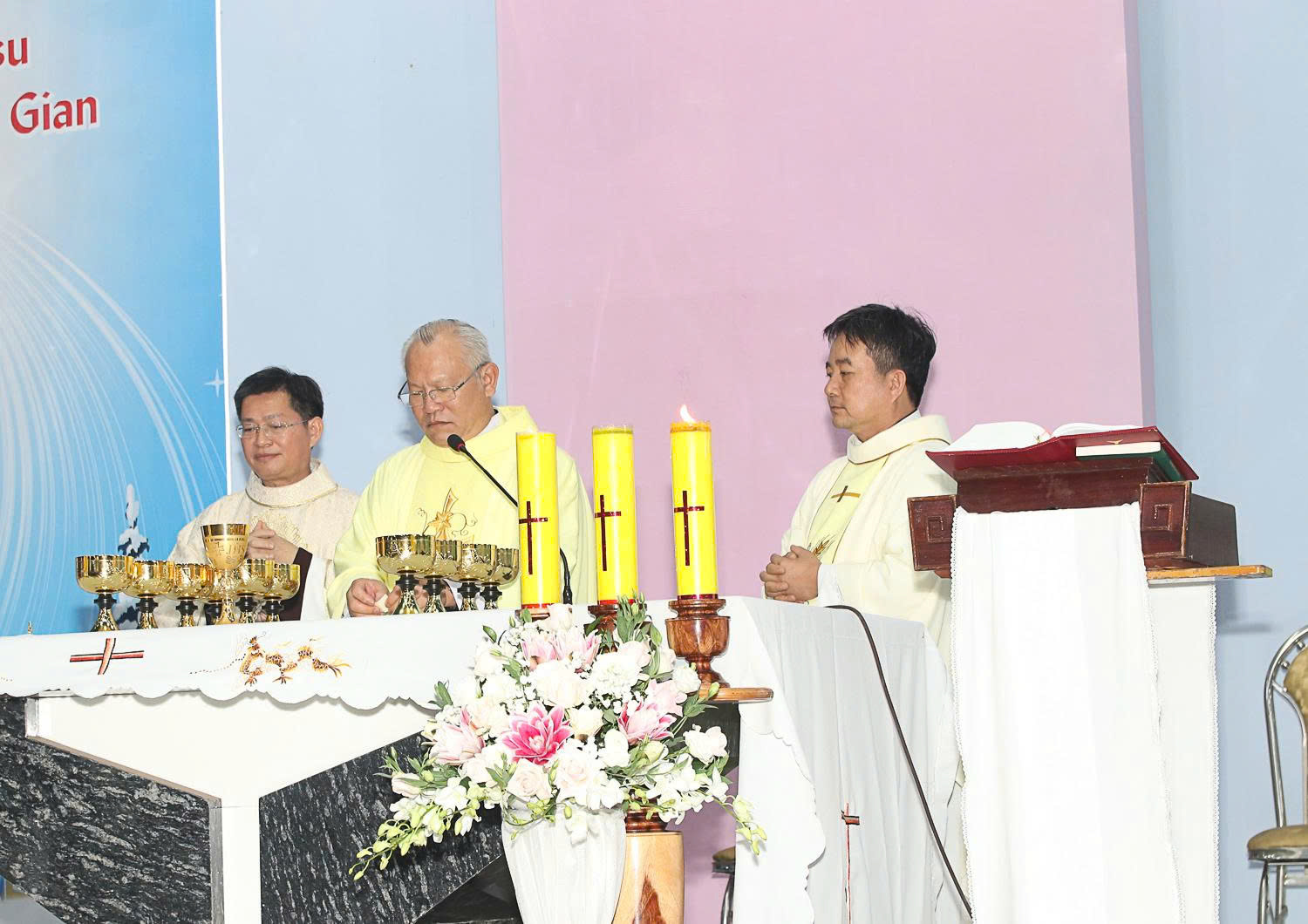 Cao điểm của Đêm Giáng Sinh là Thánh lễ Đồng tế mừng Con Thiên Chúa giáng trần, diễn ra vào lúc 20g00, do Cha Quản xứ GB. Phạm Thế Truyền chủ tế. Đồng tế cùng Cha xứ có Cha Phụ tá Giuse Phạm văn Khoa và Cha Mai Tâm là người con của Giáo xứ mới về.
