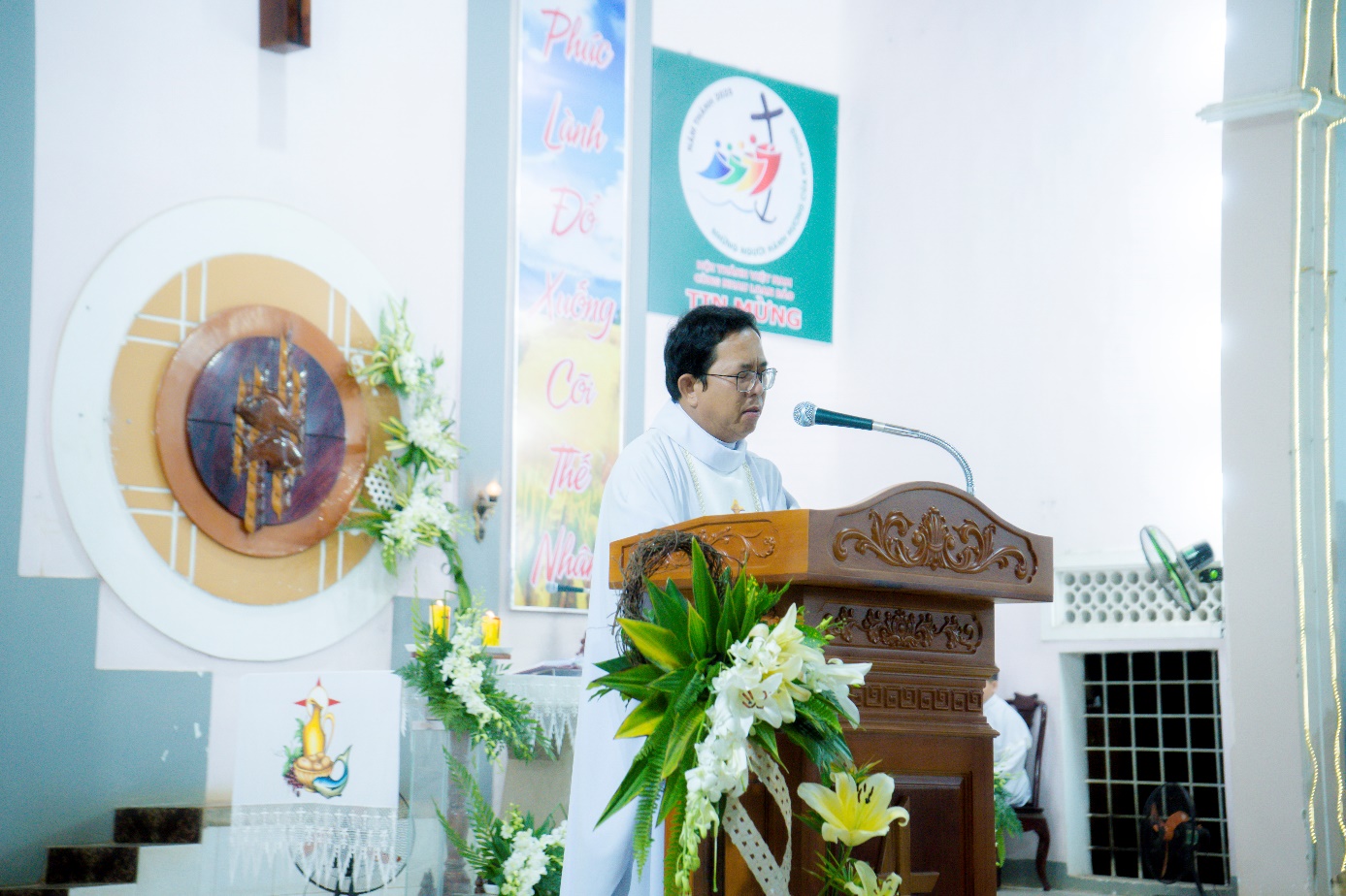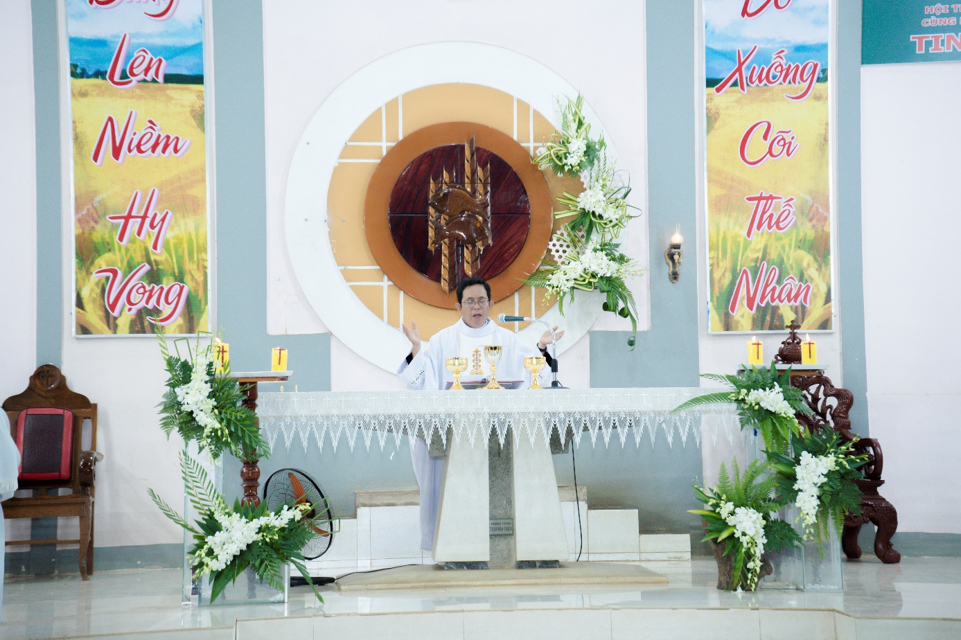 Trong phần chia sẻ Lời Chúa, Cha Quản xứ mời gọi cộng đoàn, đặc biệt là các anh chị Giáo lý viên biết noi gương Thánh nhân: sống đơn sơ, yêu thương, kiên nhẫn phục vụ và trung thành trong sứ vụ giáo dục đức tin, hầu trở nên những chứng nhân của Tin Mừng giữa lòng đời.