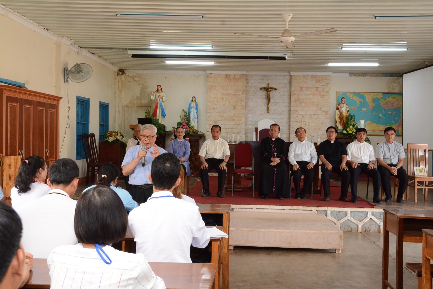 Hiện diện trong ngày khai giảng có Đức Cha Gioan Baotixita Nguyễn Huy Bắc – Giám mục Giáo phận; Cha Tổng Đại diện Phêrô Nguyễn Văn Thái; Cha Nguyên Tổng Đại diện Stêphanô Nguyễn Văn Đậu; Cha Trưởng ban Giáo lý Gioan Baotixita Nguyễn Văn Liêm; quý cha trong Ban Giáo lý Giáo phận; quý giảng viên cùng 130 học viên tham dự khóa học.