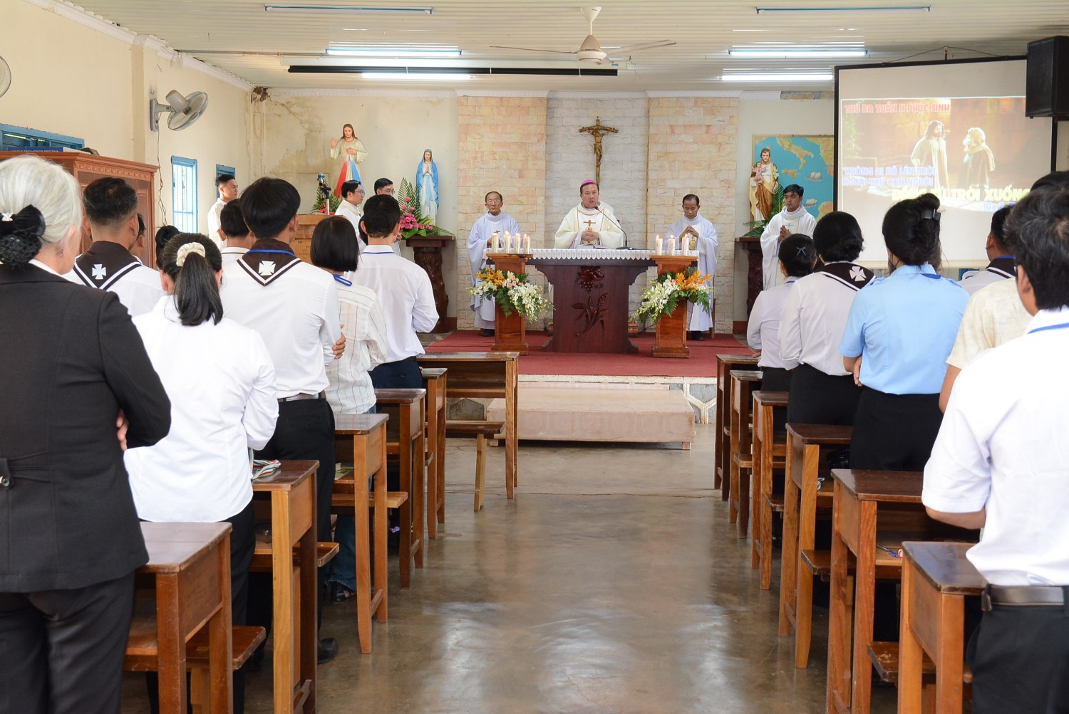 Thánh lễ khai giảng do Đức Cha chủ tế là đỉnh cao của ngày khai mạc. Trong lời mở đầu, Đức Cha nhấn mạnh rằng mọi hành trình đào tạo đều quy hướng về ân sủng Thiên Chúa. Ba năm học sắp tới được đặt dưới sự hướng dẫn của Chúa Thánh Thần – vị Thầy nội tâm, để mỗi học viên được biến đổi, trưởng thành và trở nên những giáo lý viên theo lòng mong ước của mẹ Hội Thánh.
