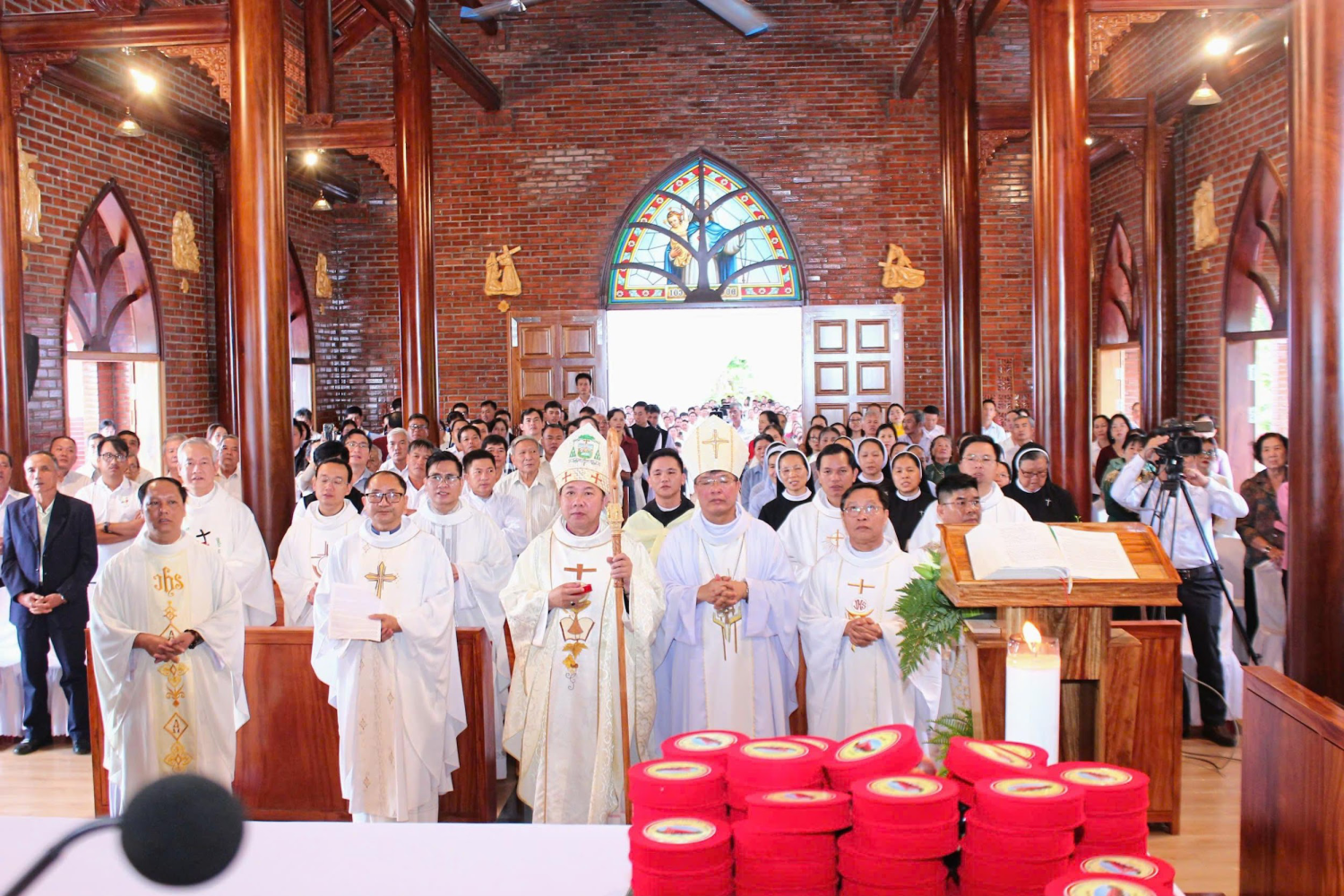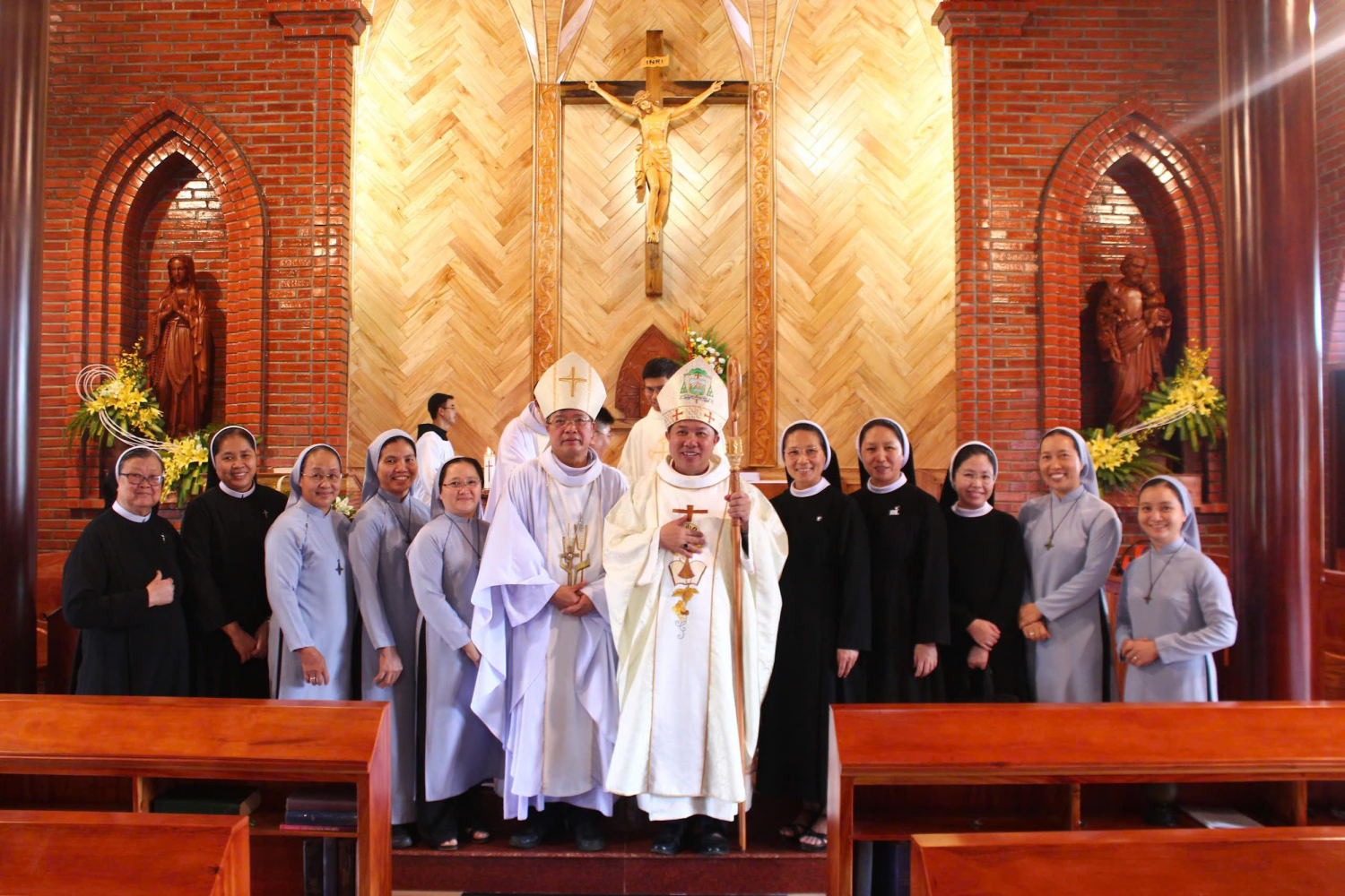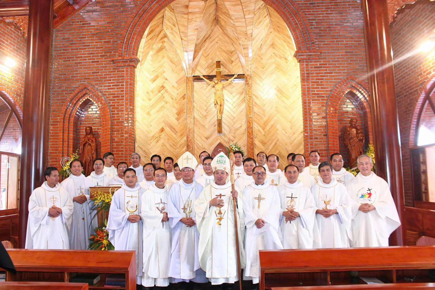 Thánh lễ tạ ơn hôm nay do Đức Cha Gioan Baotixita Nguyễn Huy Bắc chủ sự. Đồng tế với ngài có Đức viện phụ Fr.M.Phêrô Khoa Nguyễn Thái Bình, quý Cha Quản hạt Phước Long – Đồng Xoài cùng một số quý Cha trong và ngoài Giáo hạt Phước Long.