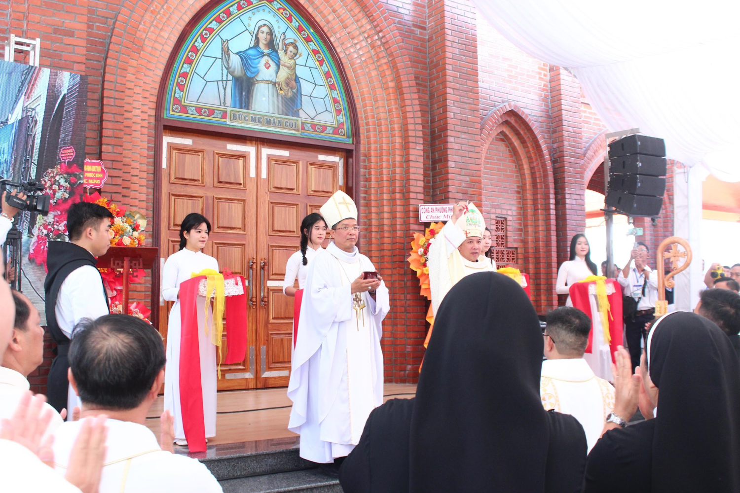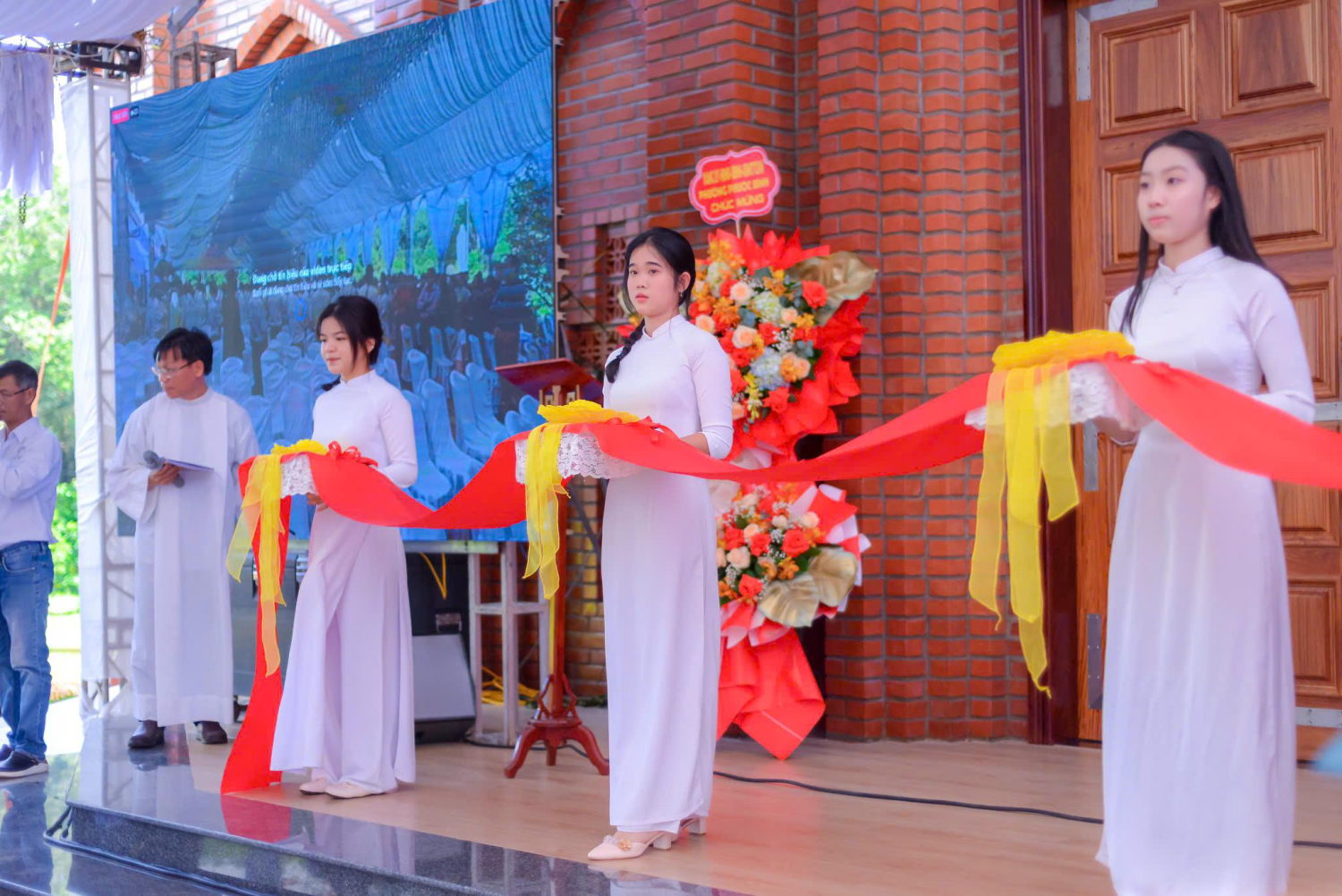 Đúng 8g30, đoàn rước tiến về tiền sảnh Nhà nguyện, sau lời nguyện, Đức Cha Giáo Phận, Đức viện phụ Đan viện và Cha Hạt trưởng hạt Phước Long cắt băng khánh thành.