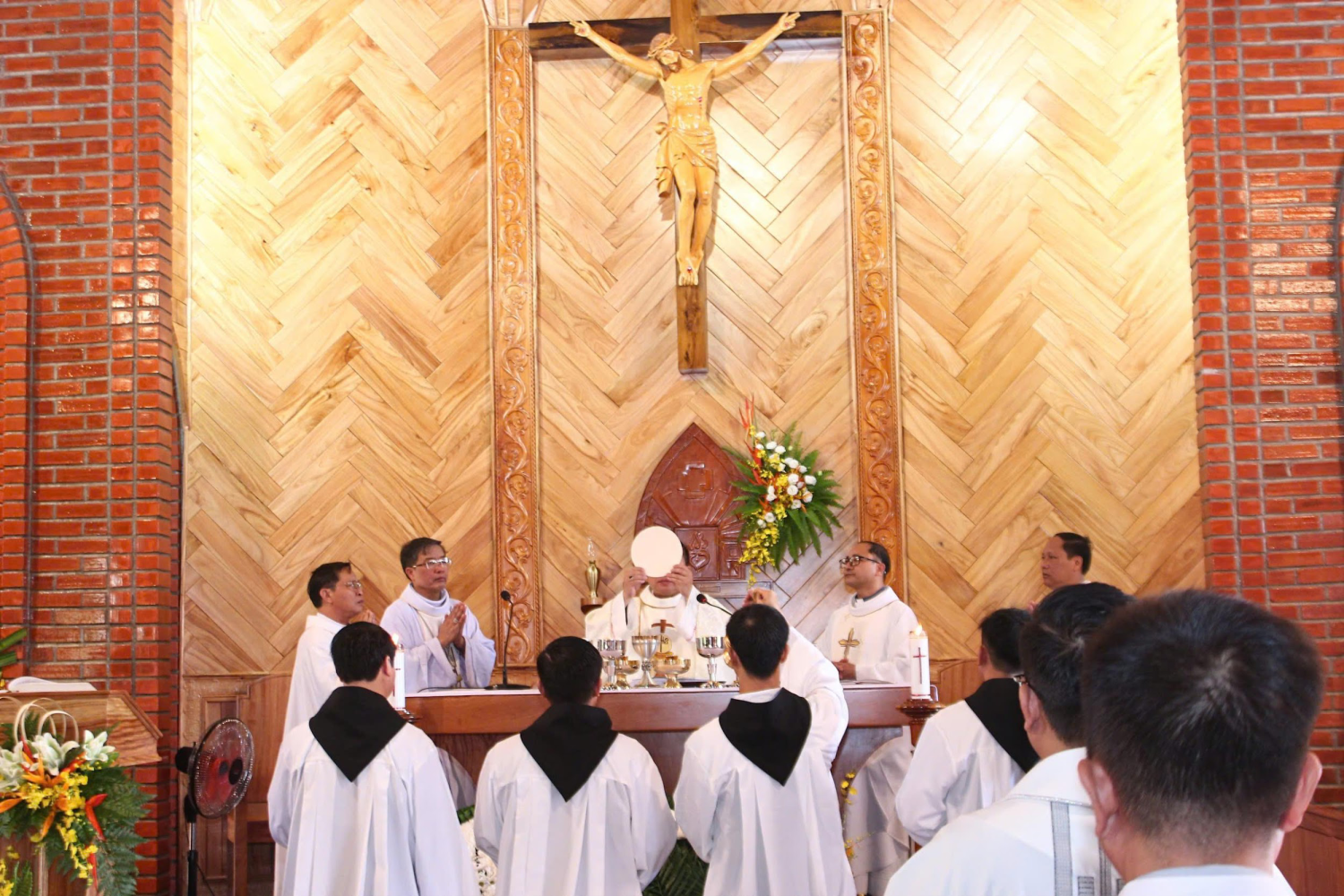 Hôm nay ngày 4/10/2025, là ngày trọng đại cho Đan viện Xi-Tô Thánh Mẫu Mân Côi – Long Điền. Trong niềm hân hoan và tâm tình tạ ơn Thiên Chúa, Đức Cha Gioan Baotixita Nguyễn Huy Bắc, Giám mục Giáo phận Ban Mê Thuột, Đức Viện phụ Đan viện, quý Cha, quý Đan sĩ, quý Soeur và quý cộng đoàn dân Chúa trong và ngoài Giáo xứ Long Điền, đã quy tụ nơi đây để long trọng cử hành nghi thức làm phép và khánh thành Nguyện đường Đan viện, sau một thời gian nỗ lực xây dựng.