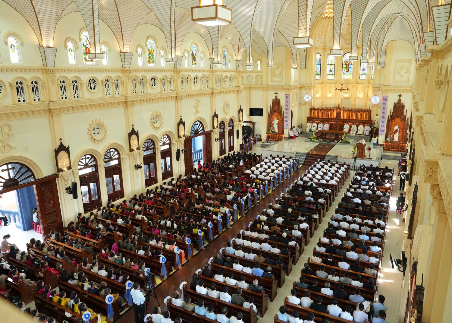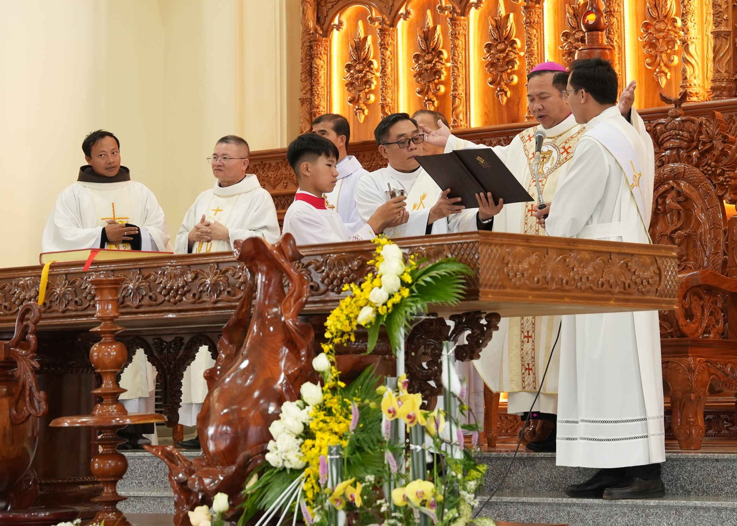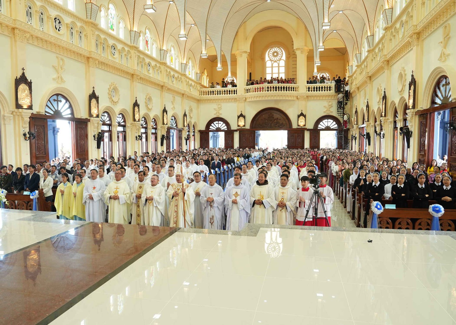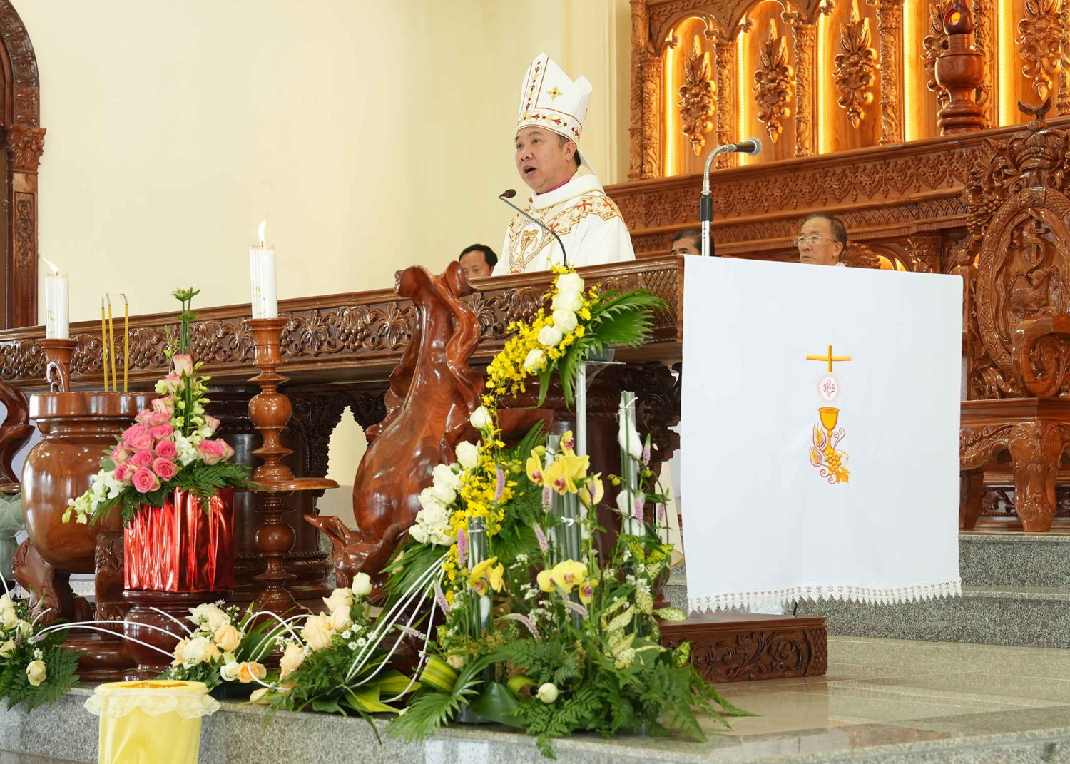 Cùng hiện diện để hiệp thông còn có quý Thầy Phó tế, quý Bề trên, quý Tu sĩ nam nữ, quý Hội đồng Giáo xứ các Giáo xứ bạn, quý ân nhân – thân nhân và đông đảo quý khách. Hòa chung niềm vui với Giáo xứ nhà, còn có sự tham dự của các cấp chính quyền.