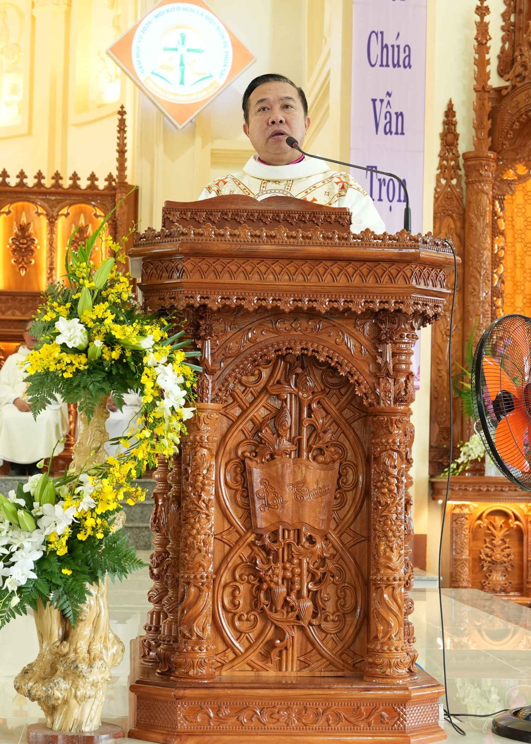 Đức Cha nói “Ngày xưa, Chúa hiện diện trong Hòm bia Giao Ước. Vua Đavit muốn xây nhà cho Chúa, nhưng chưa làm được, còn ông Salômôn đã hoàn tất ước mơ ấy. Ngày hôm nay, Nhà thờ vẫn là nơi chúng ta nghe Lời Chúa; lãnh nhận Mình Thánh Chúa; Bí tích Rửa tội, Rước lễ, Thêm sức, Hôn phối, cho đến Lễ an táng cuối đời. Đời người Kitô hữu gắn liền với ngôi Nhà thờ. Vì vậy, mỗi lần đến đây, chúng ta phải ý thức: đây là nhà của Thiên Chúa."