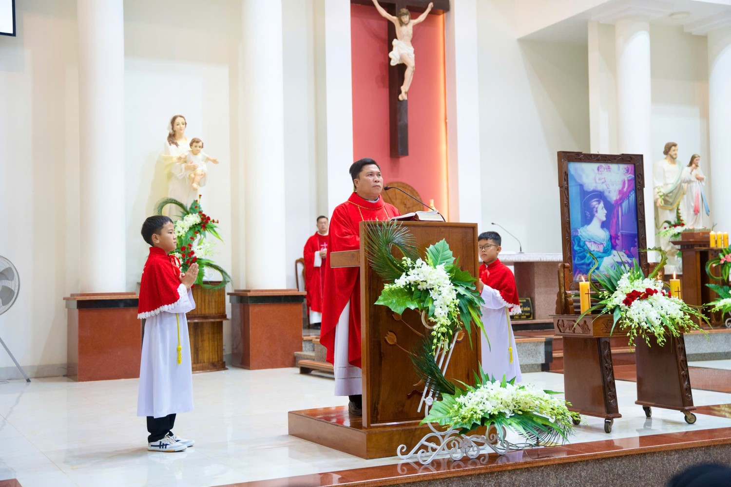Mở đầu Thánh lễ, Cha Quản xứ chia sẻ về mẫu gương rạng ngời của Thánh nữ Cecilia, vị Thánh sống cách chúng ta gần 18 thế kỷ, nhưng đời sống thánh thiện của ngài vẫn được muôn thế hệ tín hữu yêu mến, đặc biệt là các ca đoàn. Cha mời gọi cộng đoàn cầu nguyện cách riêng cho Ca đoàn Cecilia, xin Chúa nâng đỡ những anh chị em đang phục vụ và ban phần thưởng Nước Trời cho những ca viên đã qua đời. Đồng thời, Cha cũng nhắn gửi mọi người hãy biết sống trung tín và thánh thiện trong chính bậc sống của mình.