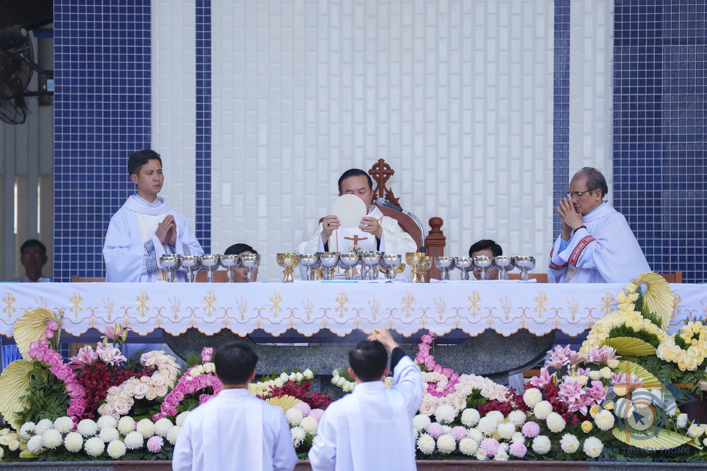 07g30, chương trình chính thức bắt đầu với phần khởi động chào mừng Đức Cha. Trong phần giới thiệu, BTC hân hoan chào mừng Đức Cha, quý Cha, quý Tu sĩ nam nữ, cùng cộng đoàn tham dự.