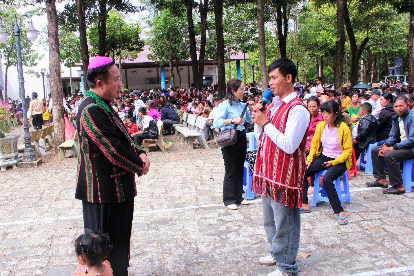 Sau Thánh lễ, Đức Cha dành thời gian giải đáp thắc mắc, tháo gỡ những nỗi băn khoăn mà anh chị em Sắc tộc đang gặp phải.