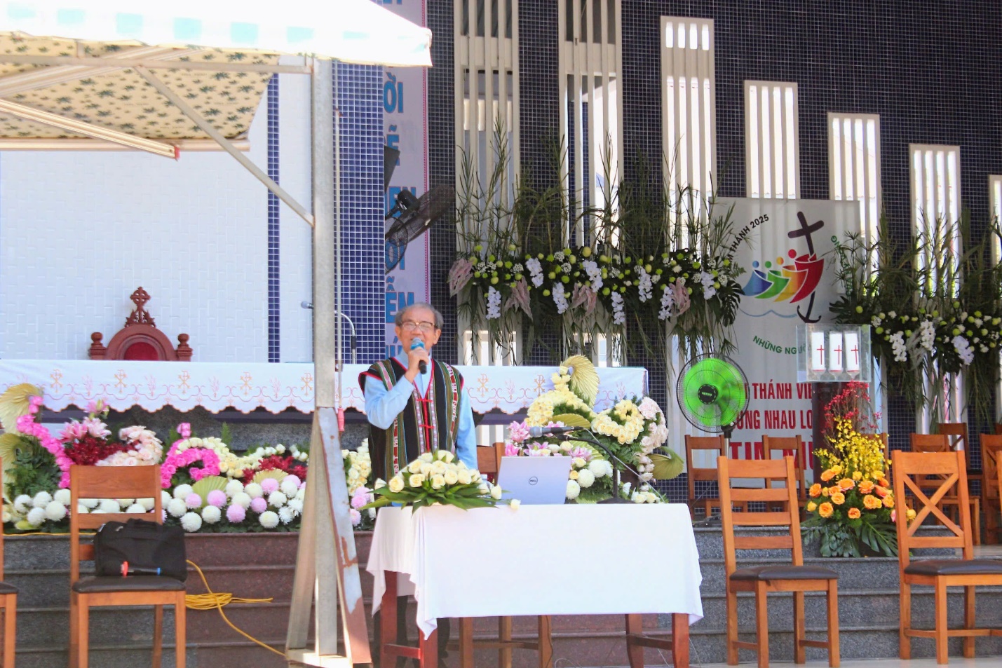 Sau phần giáo huấn của Đức Cha, Cha trưởng Ban Loan Báo Tin Mừng Giáo phận đã giúp cộng đoàn dọn mình để lãnh nhận Bí tích Hòa giải và chia sẻ tâm tình với các anh chị em Sắc tộc.