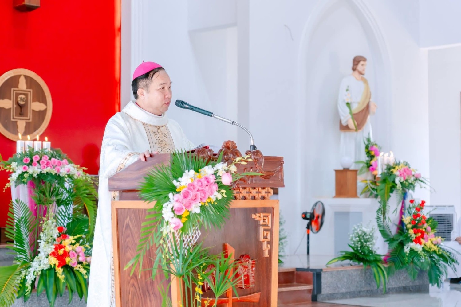 Thánh lễ hôm nay do Đức Cha G.B. Nguyễn Huy Bắc chủ tế, cùng đồng tế với ngài có Cha Tổng đại diện, quý Cha Quản hạt cùng quý Cha trong hai Giáo hạt và Giáo phận.