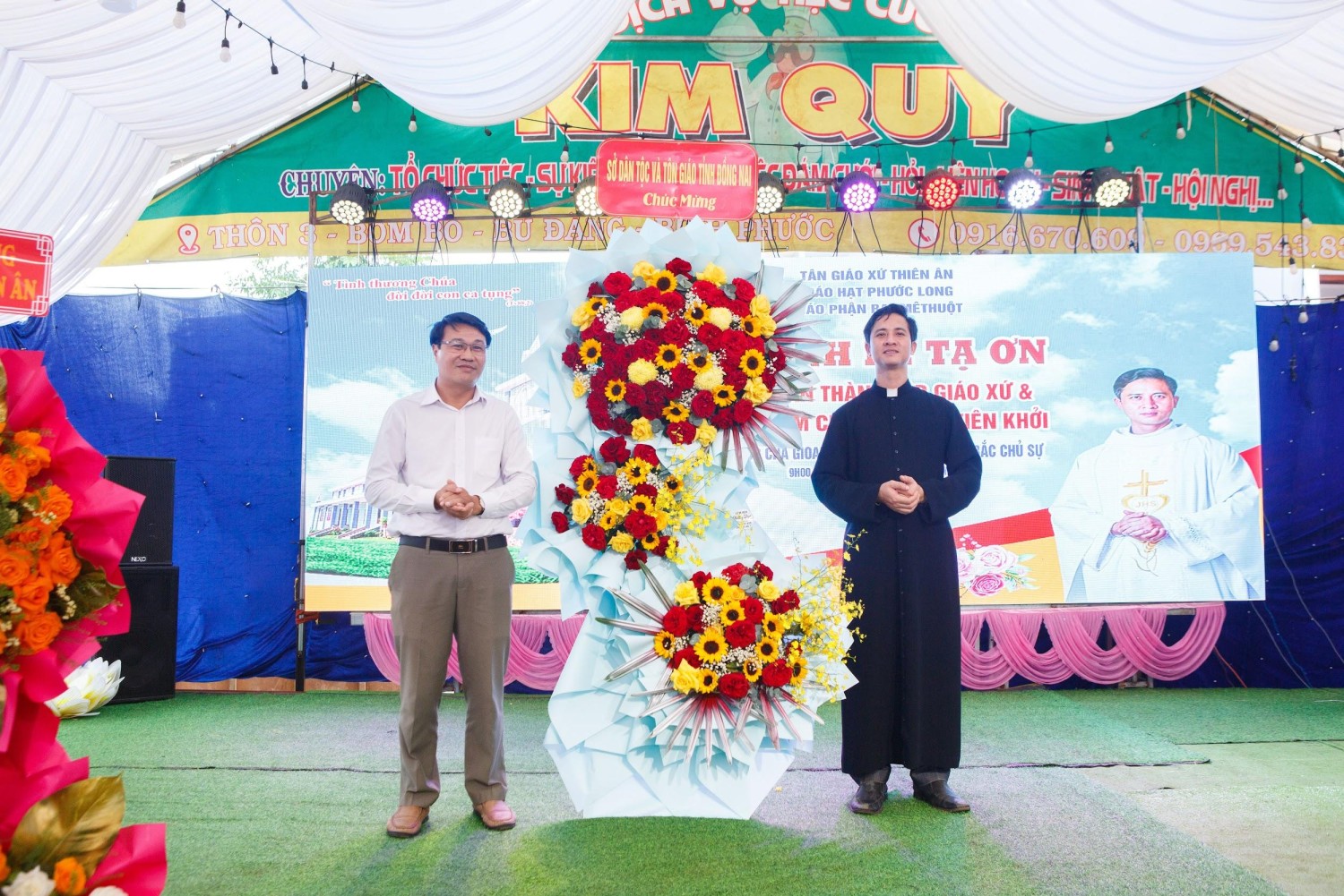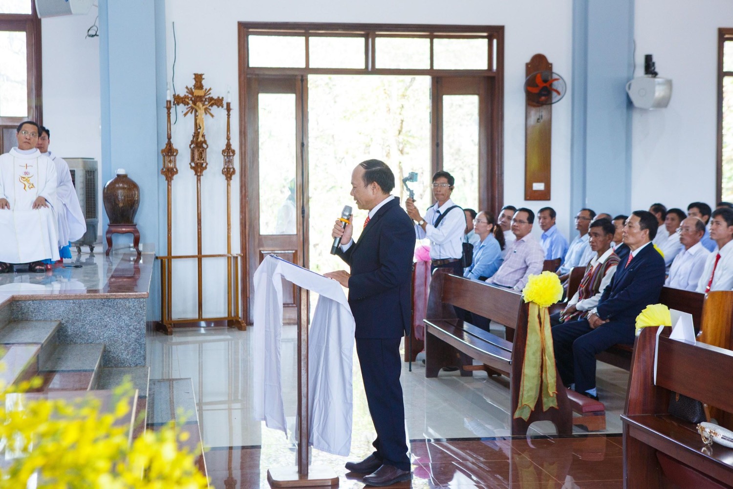 Sau phần hiệp lễ, vị đại diện cộng đoàn đã dâng lời tri ân lên Đức Cha, quý Cha, quý Tu sĩ và toàn thể cộng đoàn đã hiện diện, cầu nguyện và chia sẻ niềm vui với Giáo xứ Thiên Ân trong ngày đặc biệt này. Hai bó hoa tươi thắm đã được dâng tặng lên Đức Cha và Cha Tân Quản xứ.