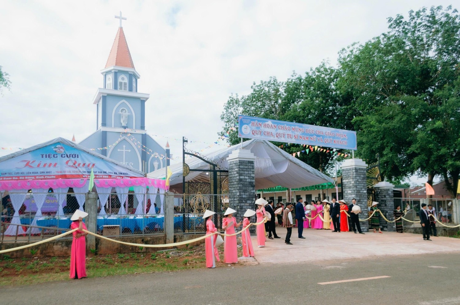 Ngay từ sớm, bà con giáo dân cùng quý khách xa gần đã quy tụ về khuôn viên Nhà thờ trong bầu khí rộn ràng và hân hoan, để đón tiếp Đức Cha, quý Cha, quý Tu sĩ nam nữ và quý khách mời.