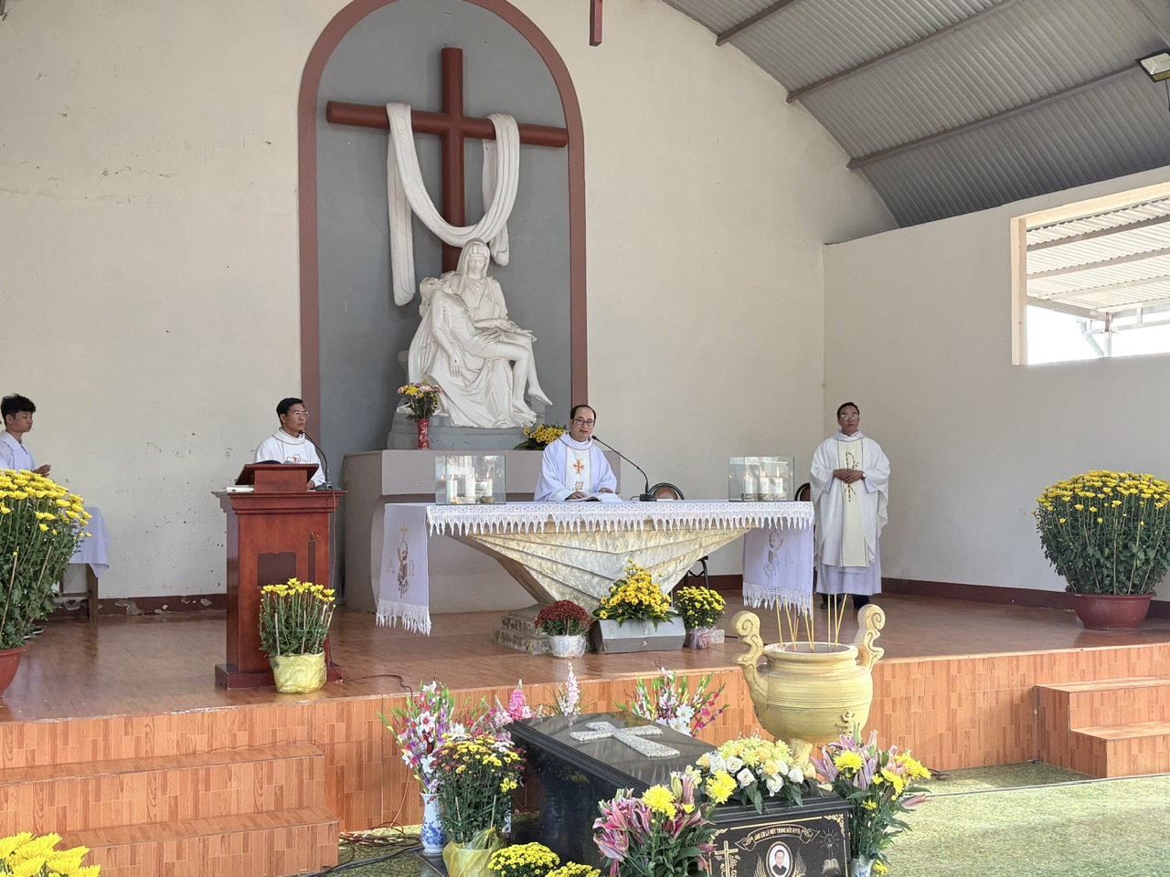 Thánh lễ do Cha Quản xứ Tôma Aquinô chủ tế; đồng tế với ngài có Cha quê hương Vinh sơn và ChaGiuse, cùng sự hiện diện đông đảo của cộng đoàn giáo dân trong và ngoài giáo xứ.