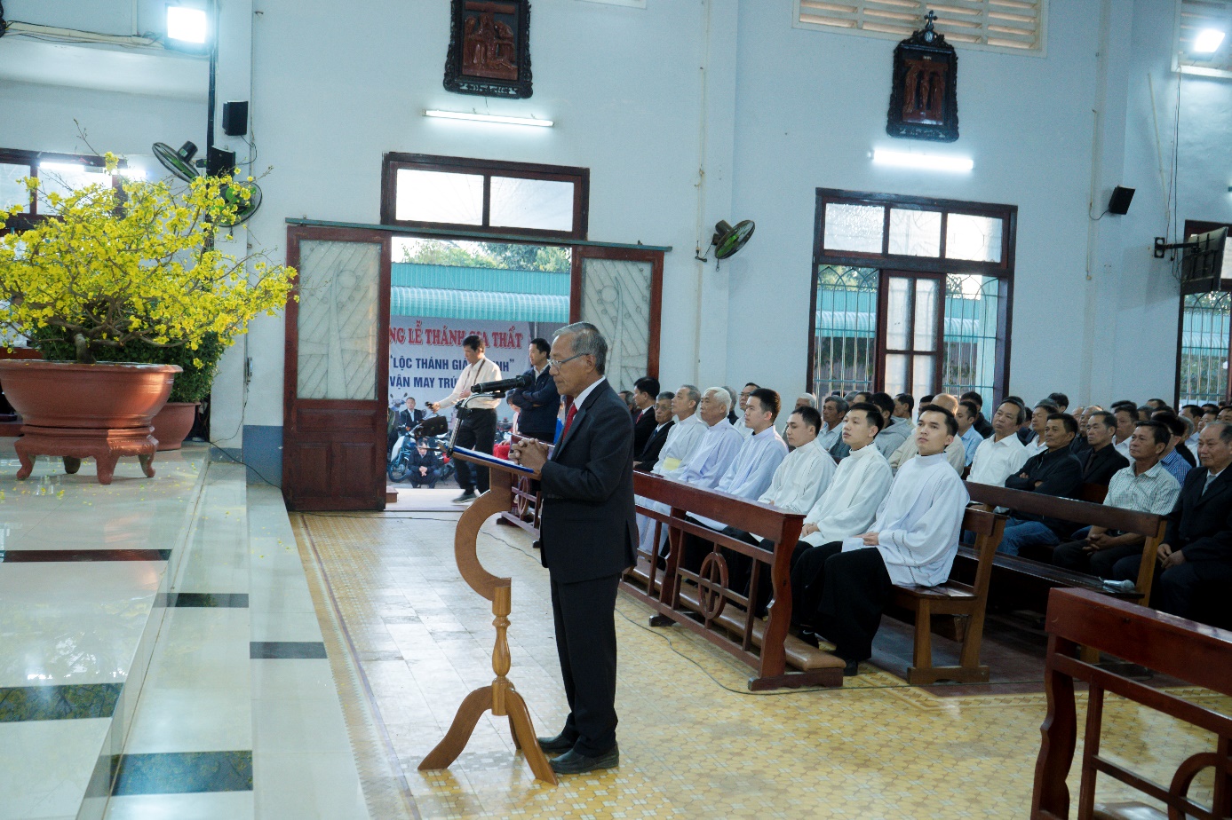 Sau lời nguyện kết lễ, ông Chủ tịch Hội đồng Giáo xứ đại diện cộng đoàn chúc mừng Quý cha, quý Thầy, quý Soeurs, quý Chức và toàn thể cộng đoàn.
