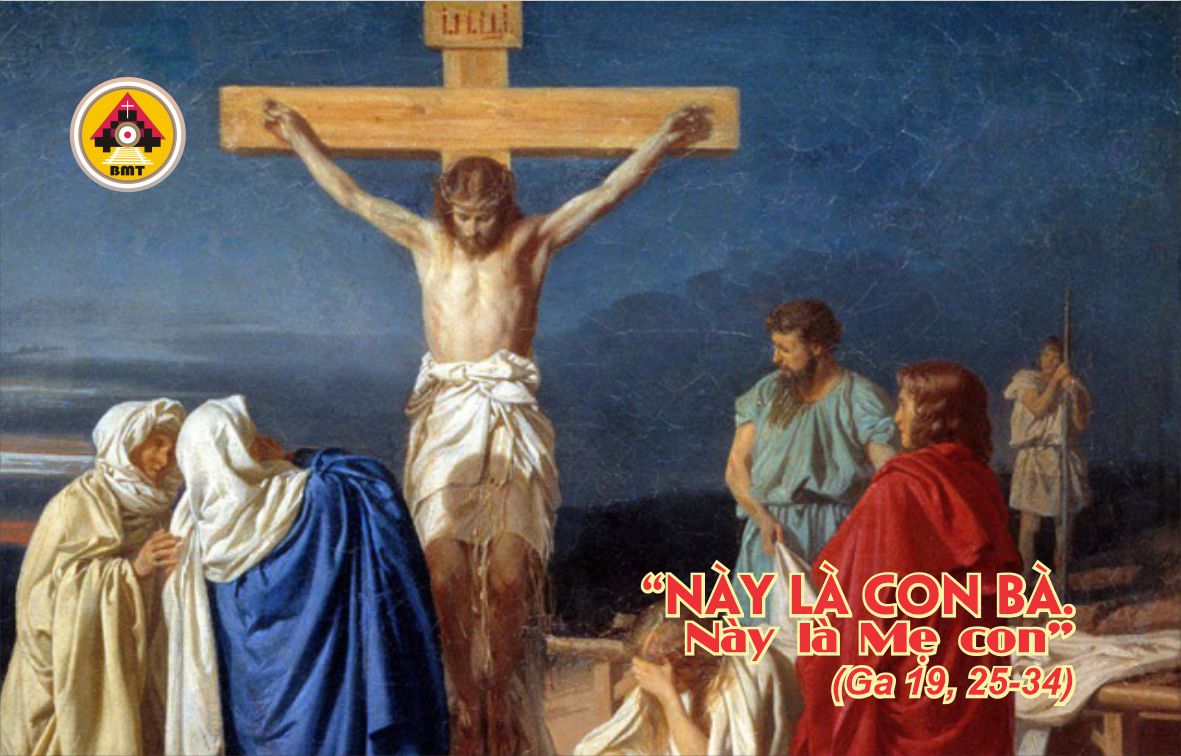 Đứng gần thập giá Đức Giê-su, có thân mẫu Người, chị của thân mẫu, bà Ma-ri-a vợ ông Cơ-lô-pát, cùng với bà Ma-ri-a Mác-đa-la. Khi thấy thân mẫu và môn đệ mình thương mến đứng bên cạnh, Đức Giê-su nói với thân mẫu rằng : “Thưa Bà, đây là con của Bà.” Rồi Người nói với môn đệ: “Đây là mẹ của anh.” Kể từ giờ đó, người môn đệ rước bà về nhà mình.