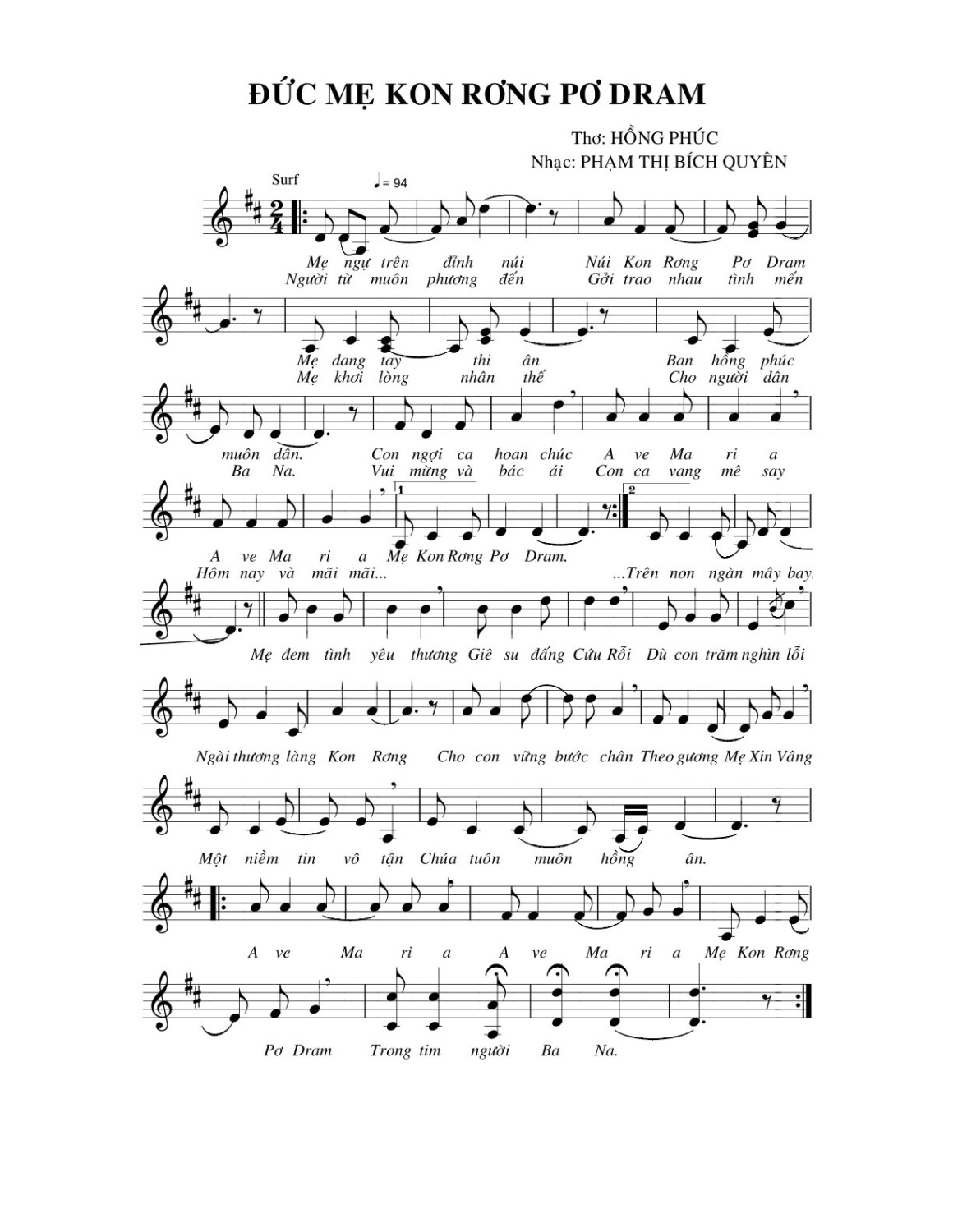 ĐỨC MẸ KON RƠNG PƠ DRAMThơ: Hồng PhúcNhạc: Phạm Thị Bích QuyênTiếng hát: Phi ƯngHòa âm & thực hiện video: Phi Ưng Bazan
